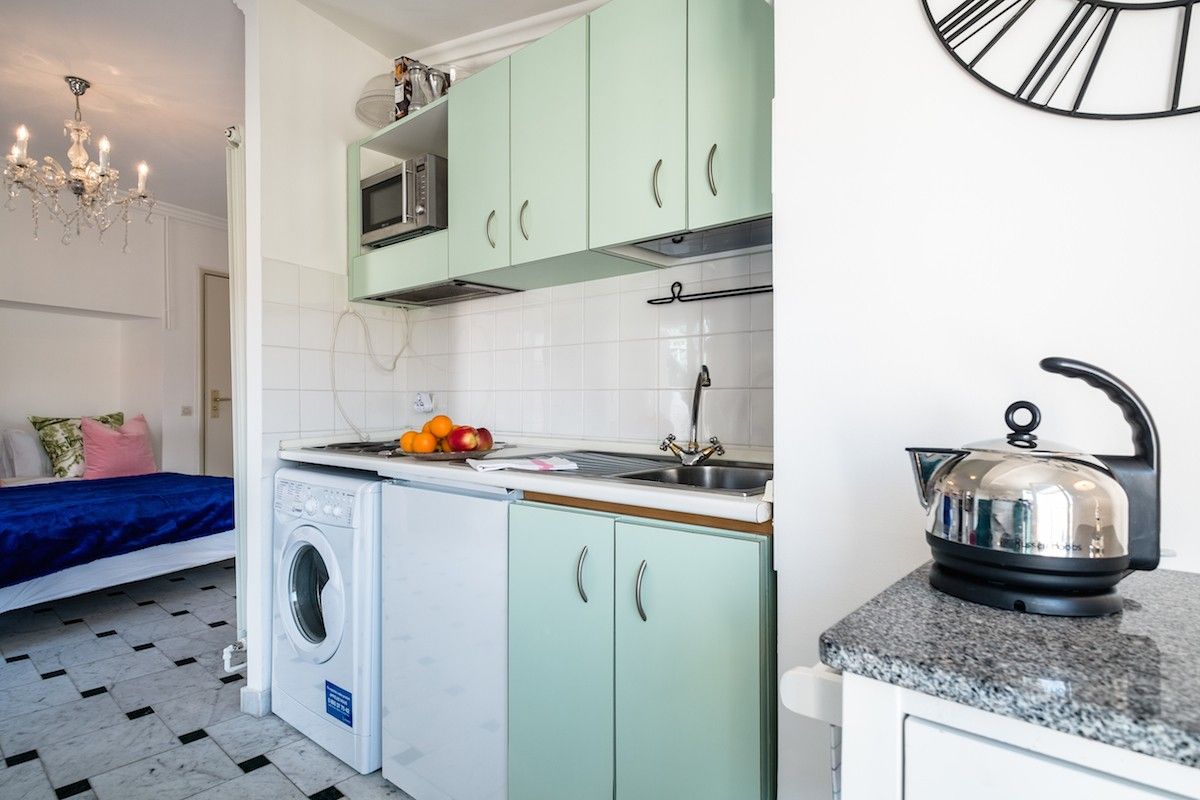 Gabrielle reminds us of the classic movie 'A room with a View' with Helen Bonham Carter and the enigmatic Julian Sands, but set in Nice. Terracotta rooftops, colourful cathedral domes and Niçoise life is laid out before you from the rooftop wrap around balcony that extends the full length of this studio apartment. The decor is as classic as the movie with unique modern twists. The location is central, with Nice on your doorstep just waiting to be explored. The cherry on the cake as there is a lift too.