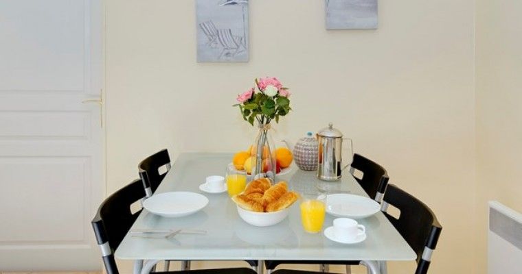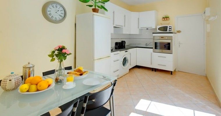 The cosy lounge area is flooded in light from the two magnificent double glazed French windows and has plenty of character with original beams and tiled floor. If you're not too busy sipping wine and watching Niçoise life go by from your balcony then take a moment and relax on the comfy sofa and watch a DVD movie on the LCD TV or read a book from the selection provided. There are also MP3 speakers at your disposal. WiFi.