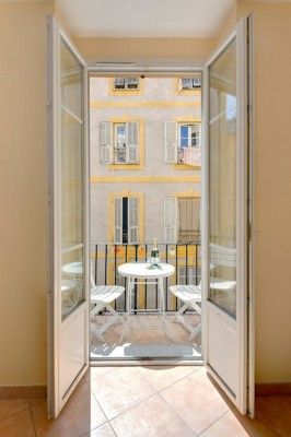 The apartment looks over Rue Rossetti. From the balcony you have views of the beautiful domed Cathedral Sainte Réparate at one end and the tranquil Colline du Château at the other. You are in the heart of the Old Town so are surrounded by cafés, bars, ice cream parlous, galleries, shops and bistros. The market place on the Cours Saleya, the beach and promenade are a couple of minutes walk away.
