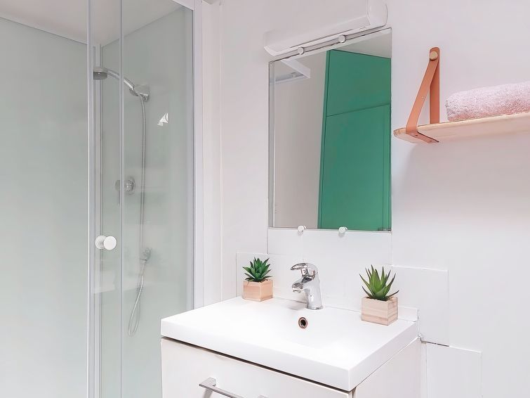 3-room penthouse 55 m2 on 5th floor. Comfortable furnishings: living/dining room with flat screen and air conditioning. 1 room with 1 double bed (140 cm, length 190 cm), air conditioning. 1 room with 1 double bed (140 cm, length 190 cm), air conditioning. Open kitchen (oven, 2 induction hot plates, toaster, kettle, microwave, freezer, electric coffee machine) with air conditioning.