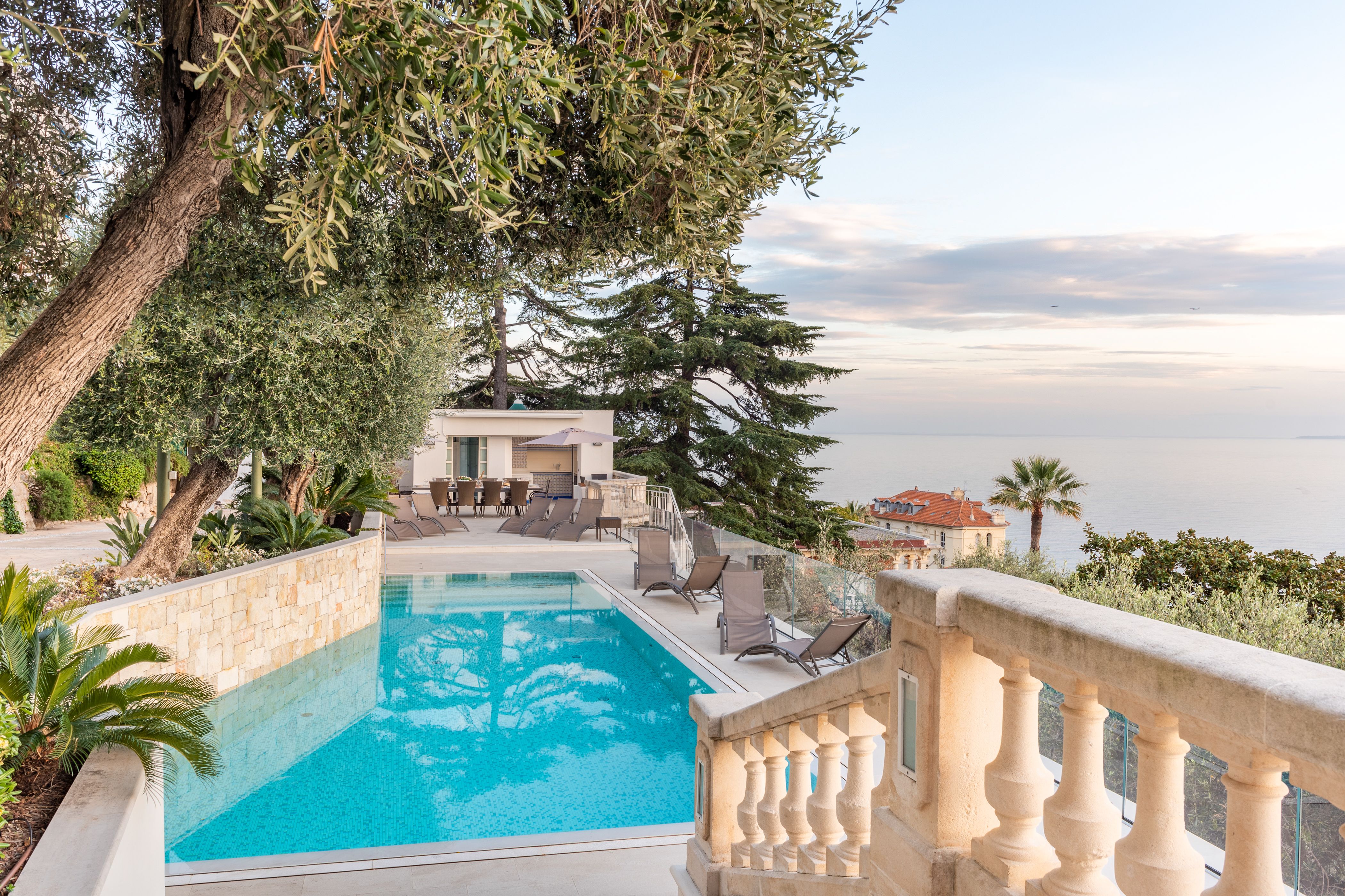 With beautiful views of the Baie des Anges and Parc du Mont Boron, this stunning Belle Époque style home is what dreams are made of. With numerous terraces to make the most of the vistas and the Côte d'Azur climate, you’ll be spoilt for choice. You’ll find lush gardens, a private pool, ornate fountains, balconies and a hot tub. Inside boasts luxurious amenities including a home gym and five of the bedrooms are en-suite – two also have their own lounge areas. The location is special too – there are several beaches nearby, while the city of Nice is a short drive away. This home really does offer an exclusive oasis.