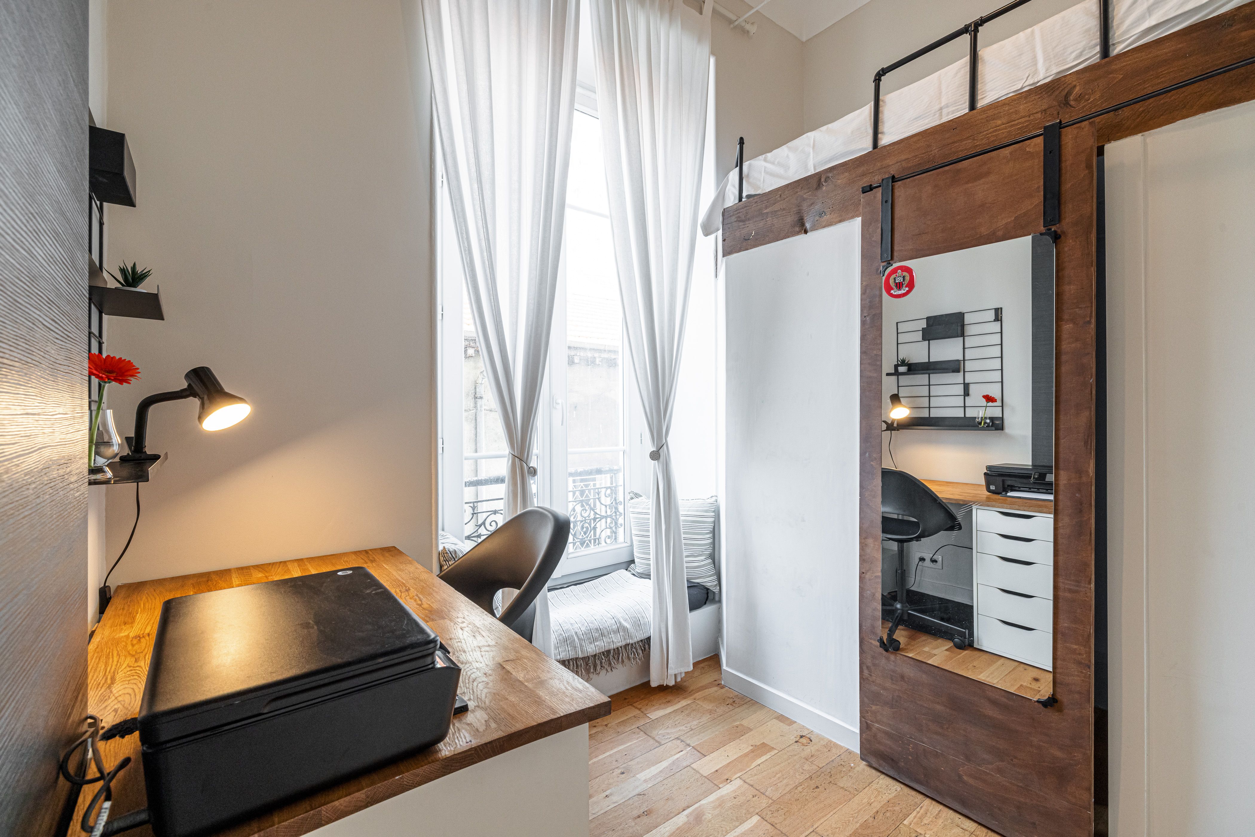 Tucked in the heart of Nice, this apartment is well suited to longer stays, with historic sites such as Notre-Dame de Nice, restaurants, and shops right on your doorstep, and the sparkling Côte d’Azur just a twenty-minute walk away. If you’re working remotely, there’s a dedicated office space, so you won’t be stuck at the dining table, along with a charming windowside reading nook if you’re here for a slower pace. And when it’s time to switch off, the balcony is where you’ll likely end up – evening aperitif in hand, with open city views.