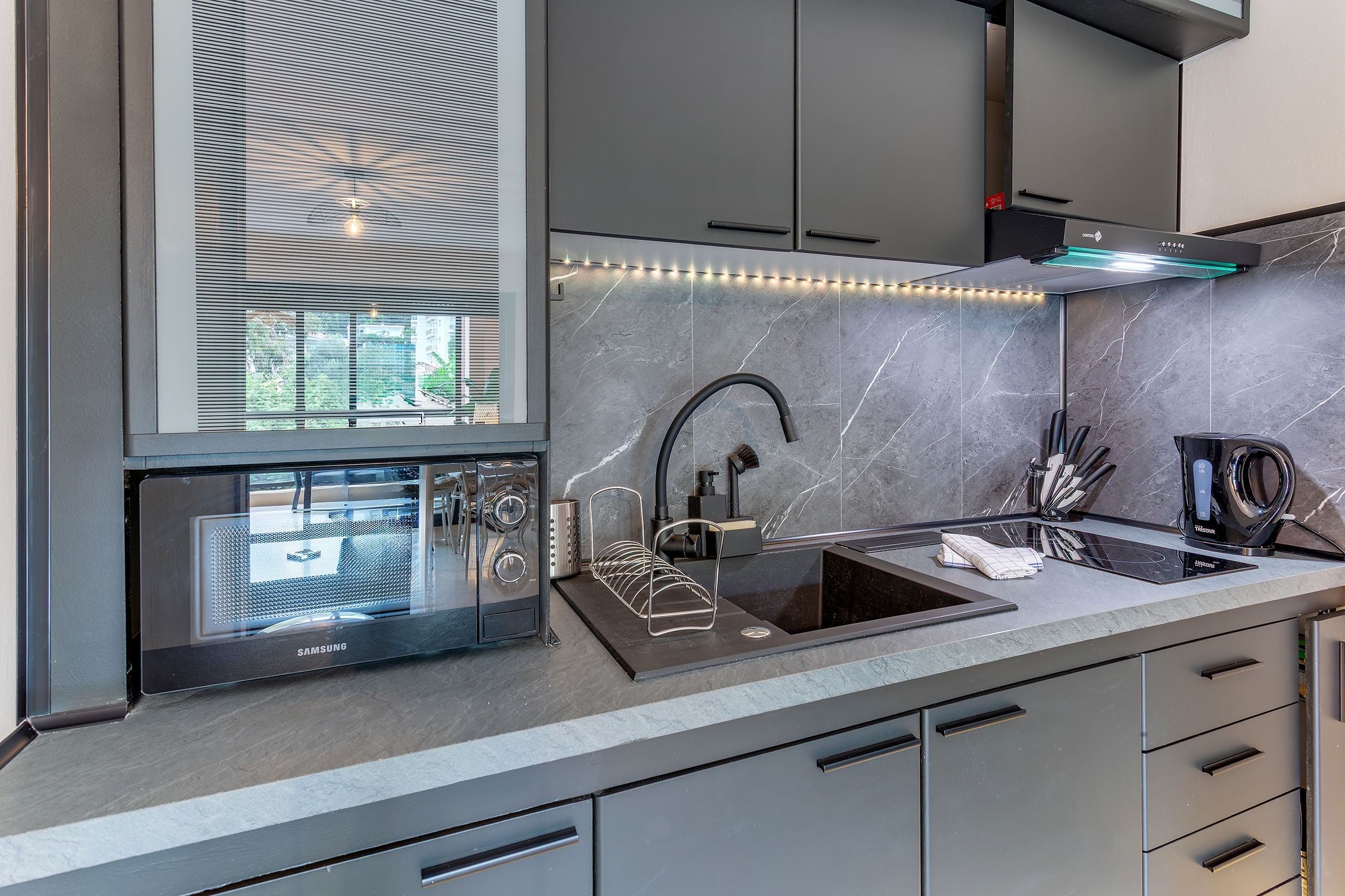 *The kitchen in this home is on the smaller side. We think it's better suited to prepping lighter bites than large meals.