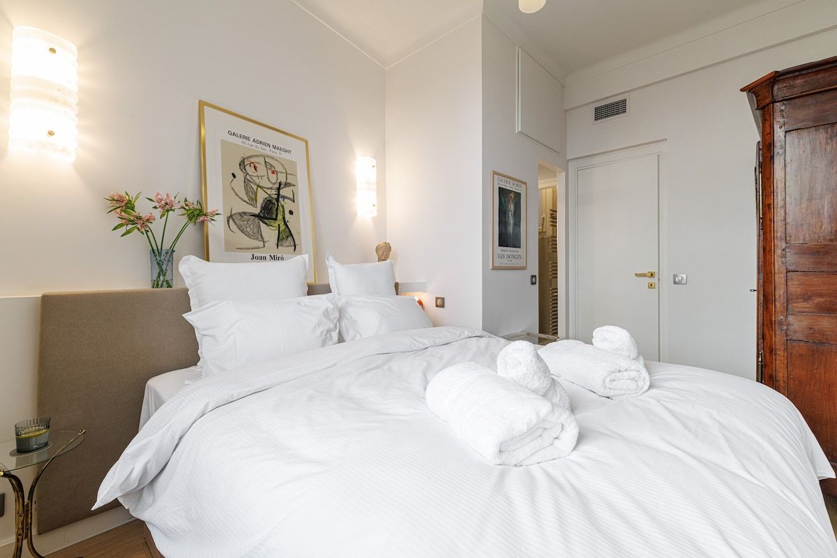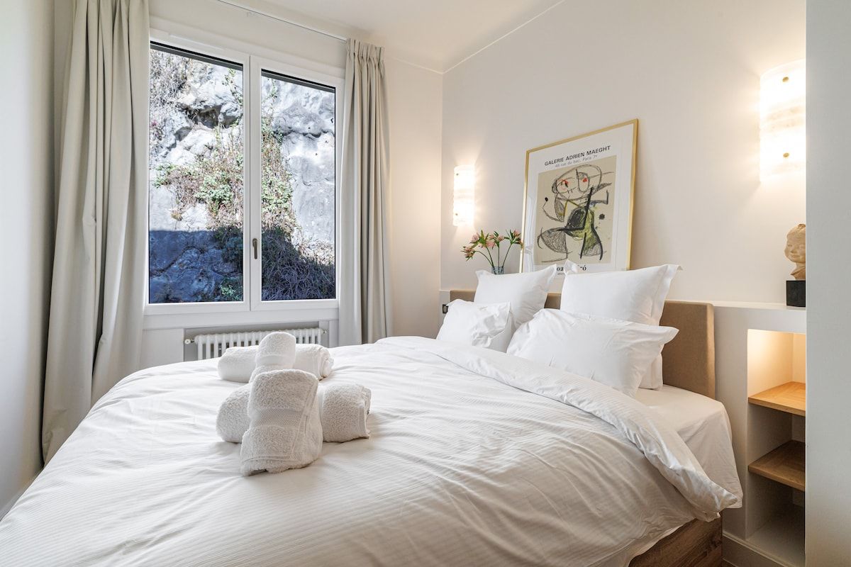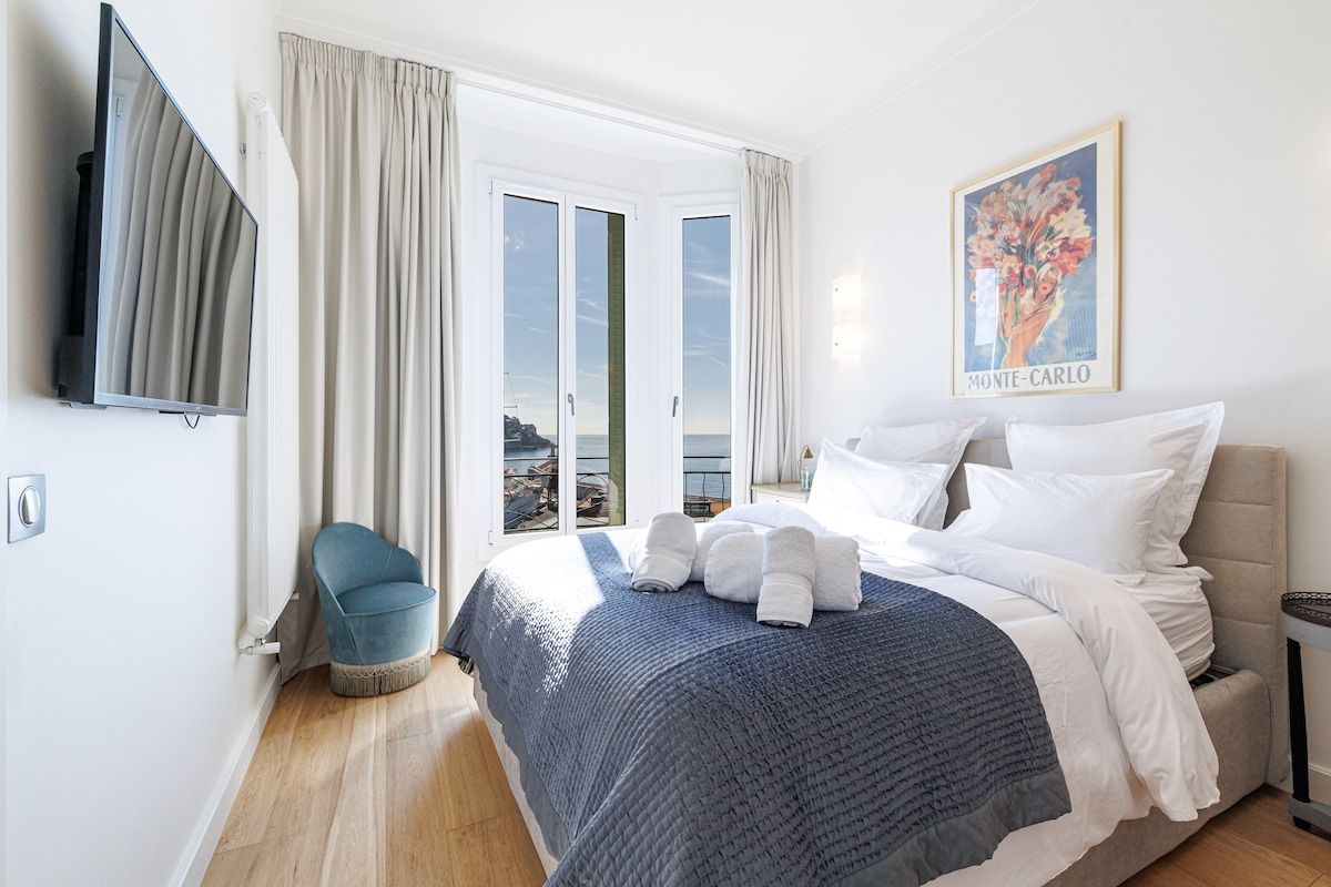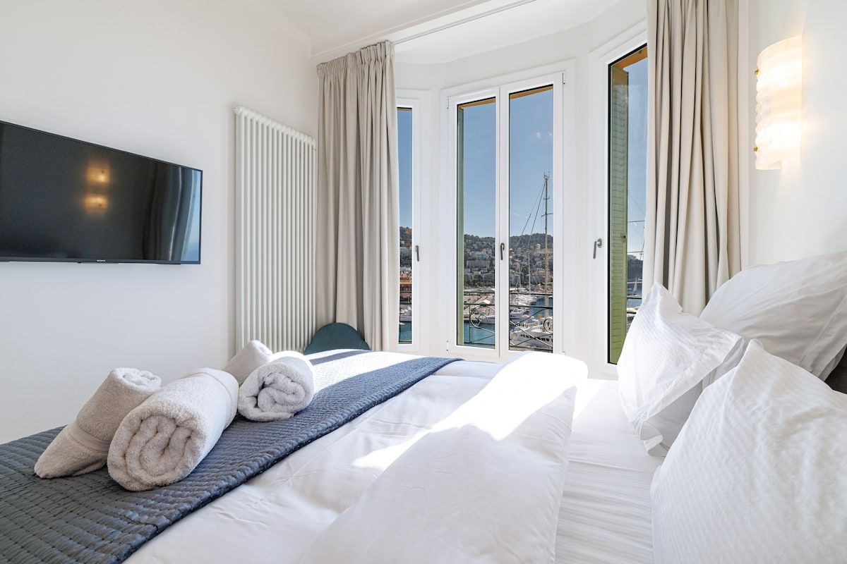 Harbour vistas are front and centre stage at this waterfront apartment set in a classic Niçois building. Better still, there's a private balcony to take it all in from. A great option for couples or a small family sharing, the three bathrooms will help mornings run smoothly. Meanwhile, the living room can also be closed off to create a third sleeping area with the help of a sofa-bed. Set within easy walking distance of the Old Town and beaches, the location is impressive, too. Planning day trips to other cities along the French Riviera? The on-site private parking will come in handy.