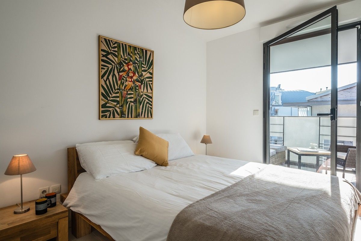 Boulevard Victor Hugo is situated in the wealthy area of Carré d'Or which is full of some of the finest hotels in Nice, making this apartment incredible value in comparison to its neighbouring accommodation. You are a moments walk away from the main high street Avenue Jean Médecin and shopping in two of the best food halls in Nice. You will find yourself a few blocks back from the beach and next to one of the leafiest exclusive shopping streets in Nice – Rue Alphonse Karr. The Old Town is approximately a 7 minute walk across the impressive Place Masséna.