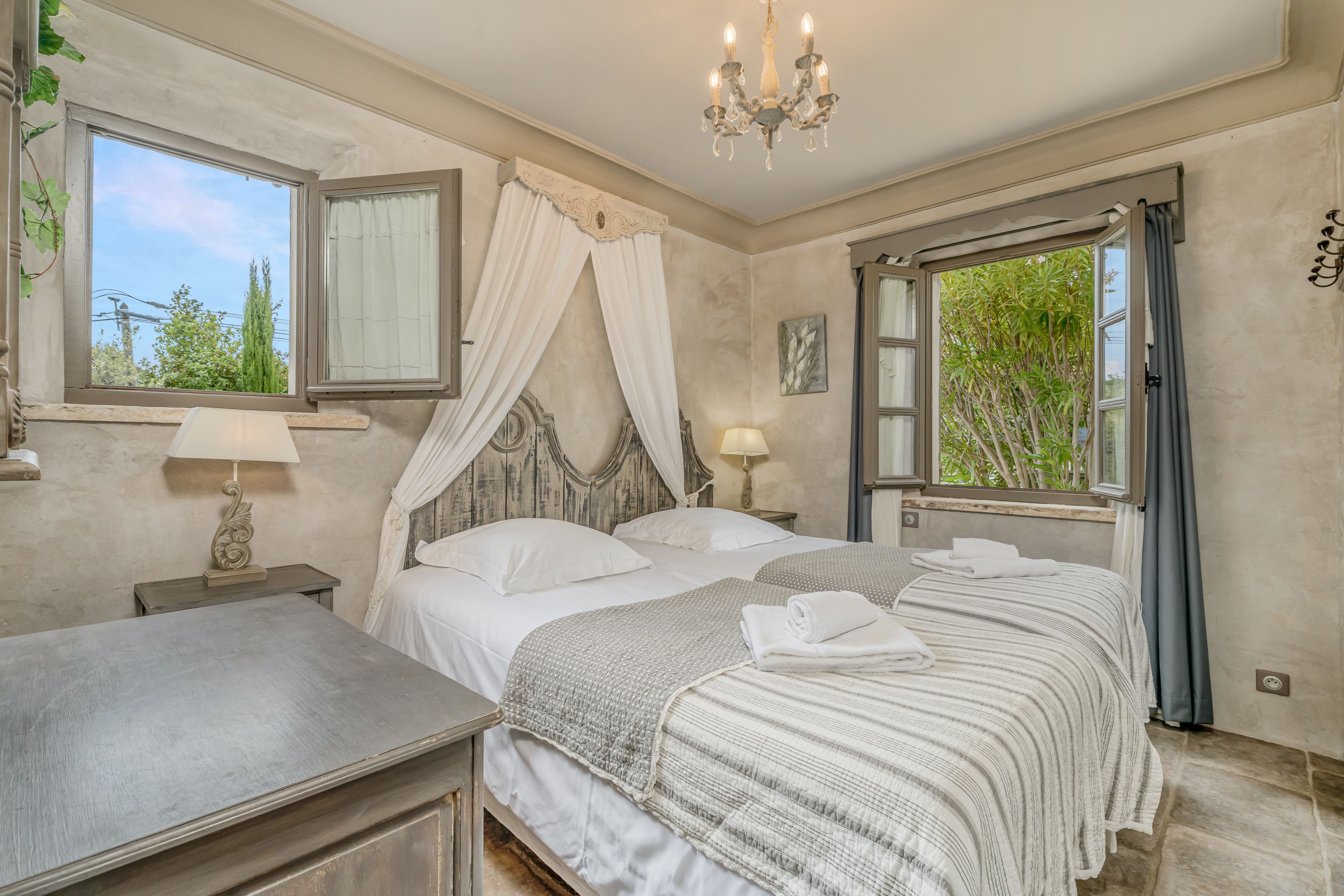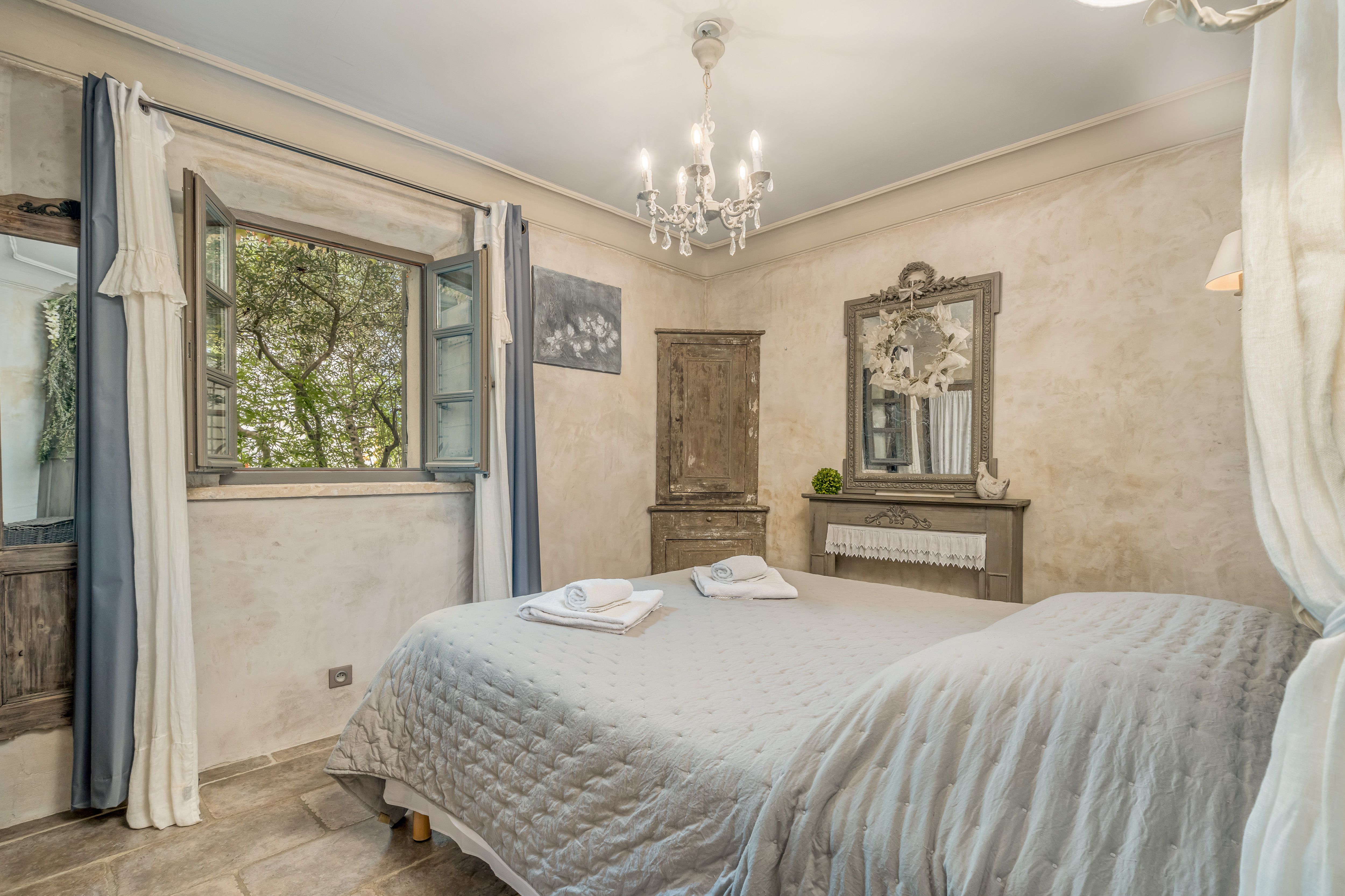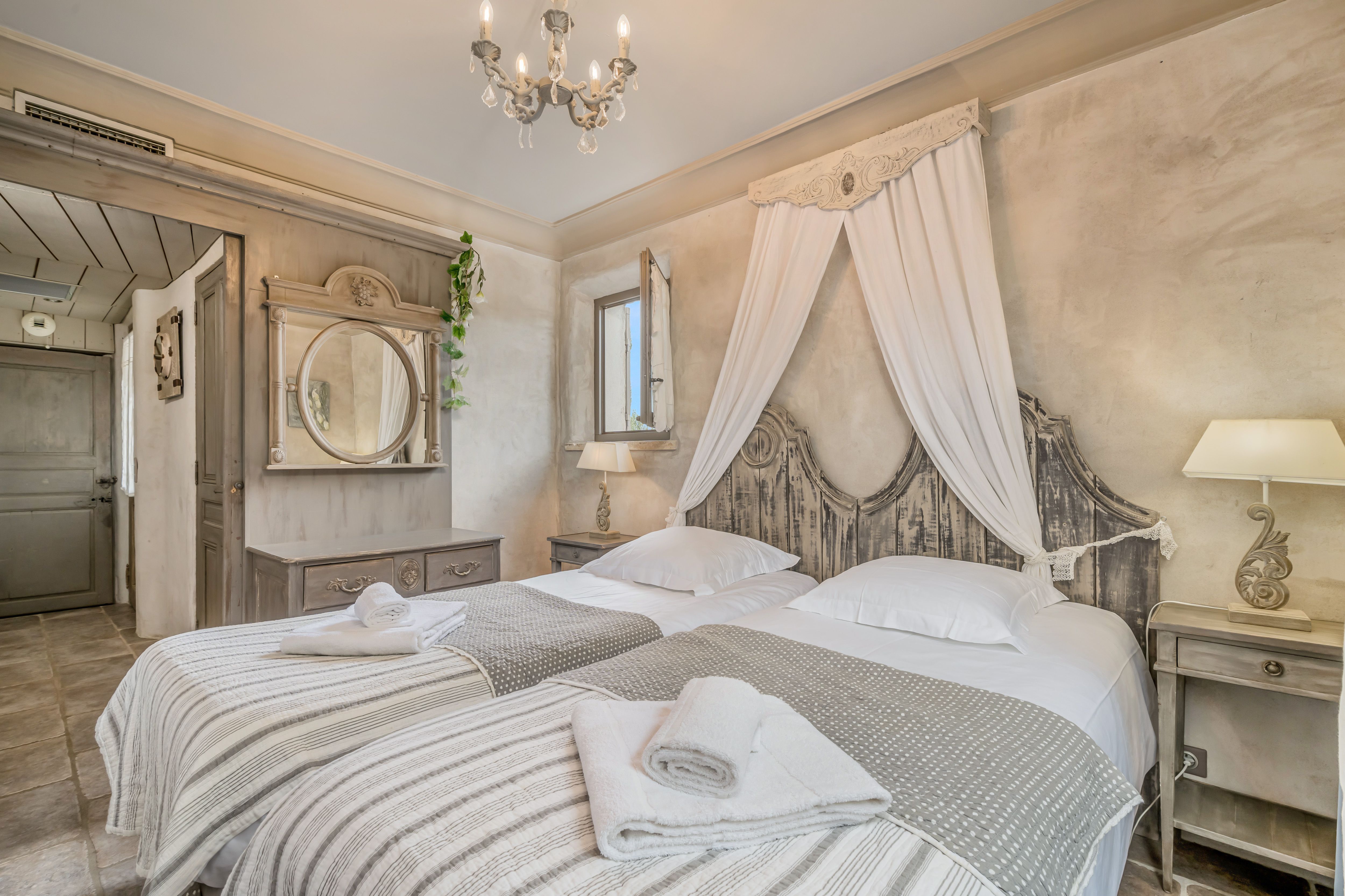 Nestled in the heart of the Luberon Regional Park, this apartment gazes out across rolling countryside. The interiors are rustic and homely, with a few touches of grandeur – think chandeliers and romantically draped beds. You'll have access to two private terraces here – one for breakfast, the other for evening drinks – as well as use of the communal pool, barbecue and gardens dotted with olive trees and lavender. As for the location, you're just an eight-minute drive from Oppède-le-Vieux and ten minutes from Ménerbes.