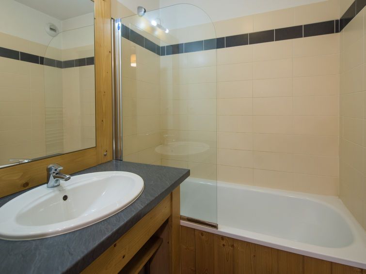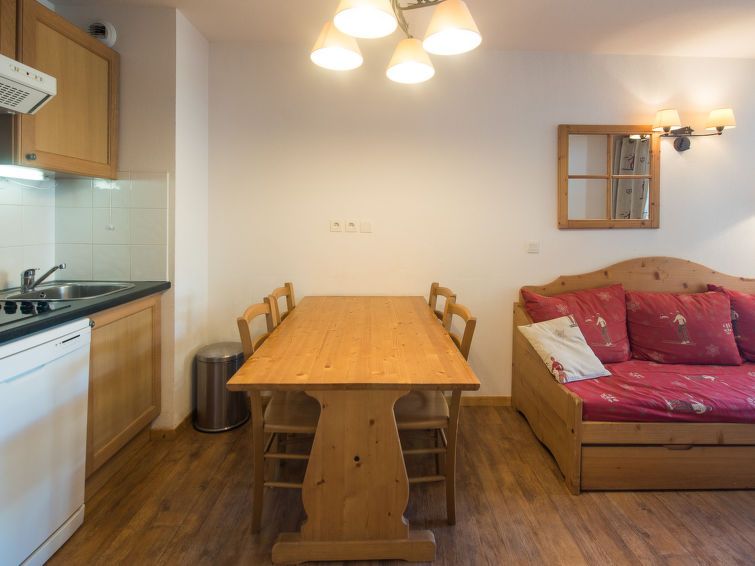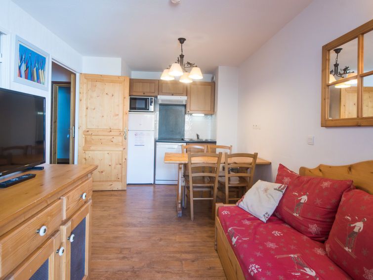 "T. Bergerie", 2-room apartment 28 m2 on 1st floor. Object suitable for 4 adults. Living room with 1 sofabed, 1 pull-out bed and TV. 1 room with 1 double bed. Kitchen (dishwasher, 4 ceramic glass hob hotplates, kettle, microwave, freezer, electric coffee machine). Bath/WC, sep. WC.