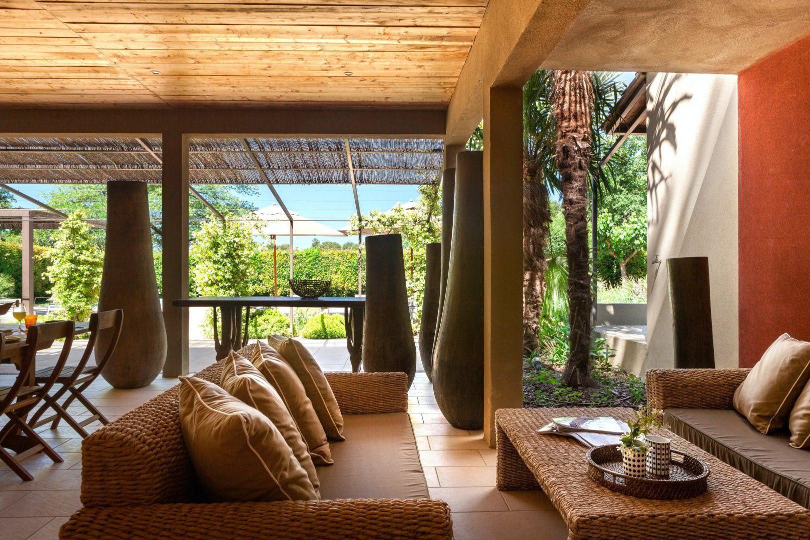This sprawling oasis is a wonderful place to enjoy a tranquil stay with all your family and friends. Spend your days relaxing by the pool or sharing a bottle of wine in the pool house. Ochre walls, natural wicker and exotic decorative features create a fabulous backdrop to fire up the barbecue and dine alfresco. Stroll the beautifully landscaped gardens, breathing in the scent of the pine trees, as you ponder the beauty of the surrounding area. Located just minutes from Pernes les Fontaine, spend the afternoon exploring the famous fountains and rambling around the charming French boutiques. On arriving home, you will be met with a villa oozing refined elegance to finish off your day.