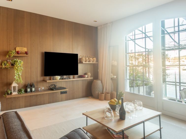 "Maison pêcheur 45", 4-room terraced house 85 m2 on 3 levels. Very modern and luxurious furnishings: living/dining room with open-hearth fireplace (only for decoration), dining table and TV. Exit to the terrace. Open kitchen in the entrance (oven, dishwasher, 4 induction hot plates, toaster, kettle, electric coffee machine).