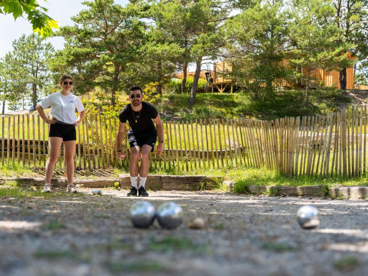 "Mobilhome Luxe 4 personnes 2 chambres", 3-room mobile home 32 m2. Comfortable furnishings: living/dining room with dining table and TV (flat screen), air conditioning. Exit to the terrace. 1 room with 1 french bed (1 x 160 cm, length 200 cm). 1 room with 2 beds (80 cm, length 190 cm).