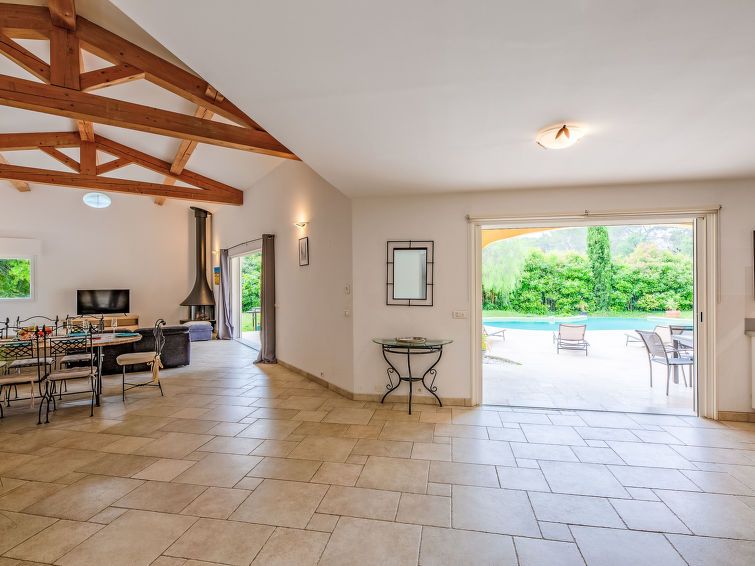 "La Pimaleanne", 5-room house 200 m2 on 2 levels, south facing position. Comfortable and stylish furnishings: large living/dining room with open-hearth fireplace and TV. Exit to the terrace. 1 room with 1 french bed (160 cm, length 200 cm), bath/shower/WC. Exit to the terrace. 1 room with 1 french bed (140 cm, length 190 cm).