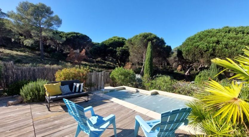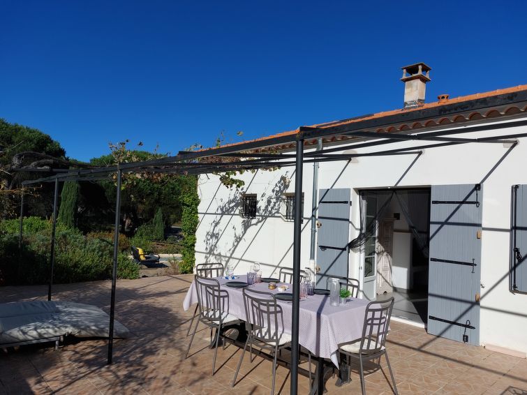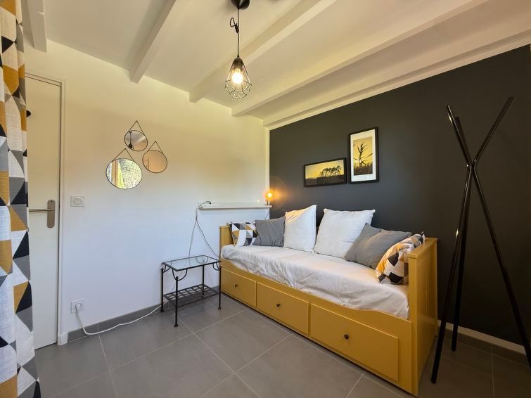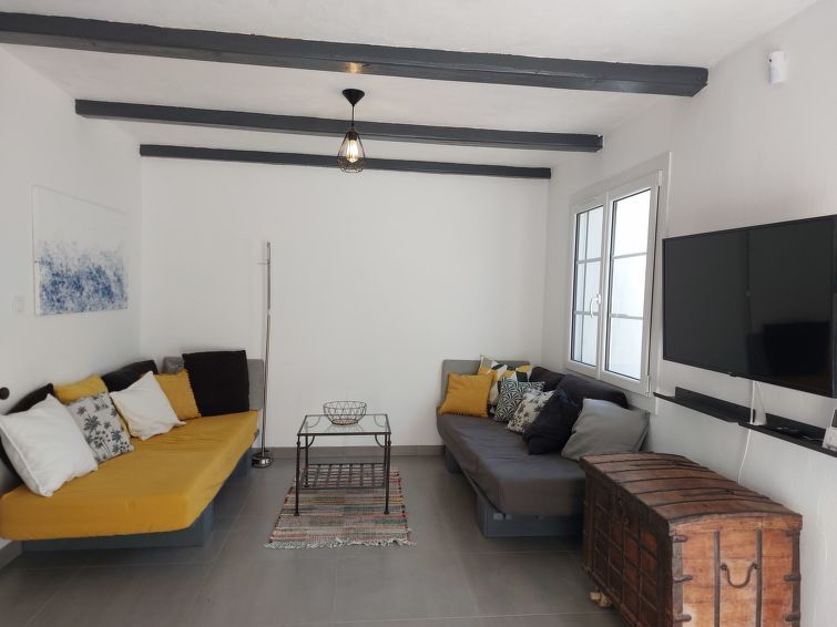 3-room house 60 m2. Living/dining room with open-hearth fireplace (only for decoration), TV, flat screen and air conditioning. Exit to the terrace. 1 room with 1 french bed (1 x 140 cm, length 190 cm), air conditioning. 1 children's room with 1 pull-out bed (2 pers. 2 x 80 cm, length 190 cm).