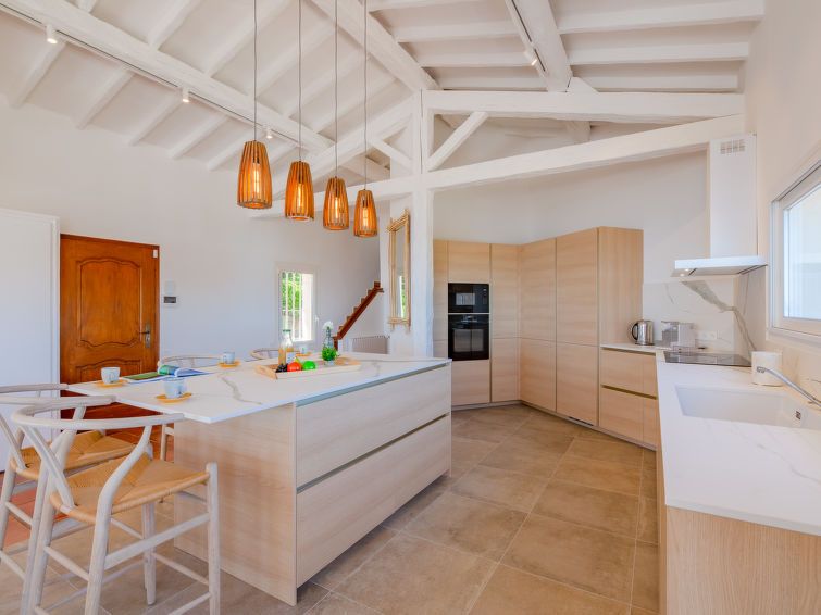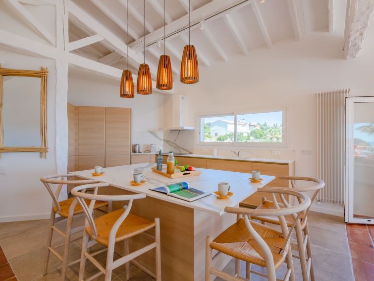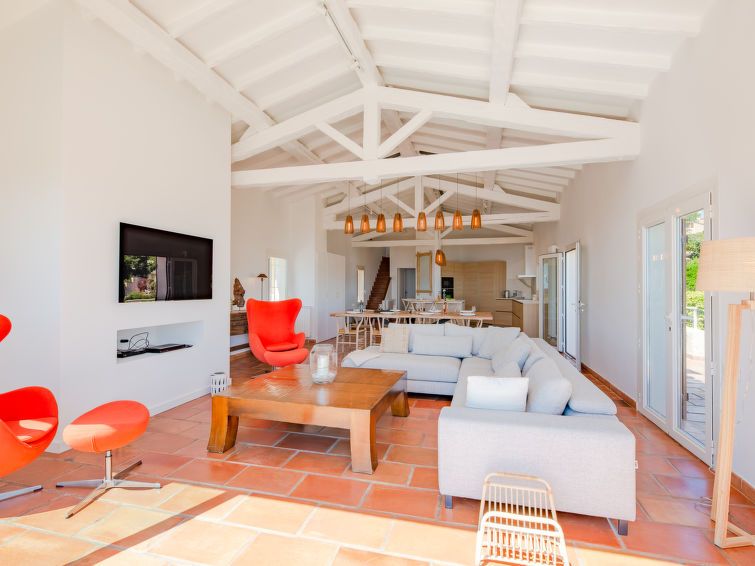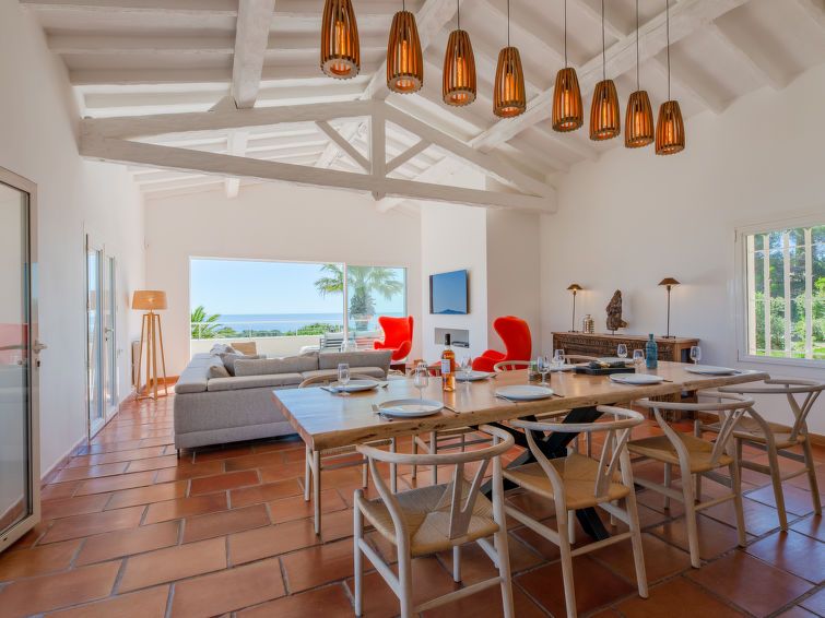 6-room house 210 m2 on 2 levels. Comfortable and modern furnishings: large living/dining room 90 m2 with panoramic window with open-hearth fireplace (only for decoration), dining table and TV (flat screen), CD-player, hi-fi system and fan. Exit to the terrace. 1 room with 1 french bed (1 x 160 cm, length 190 cm), air conditioning.