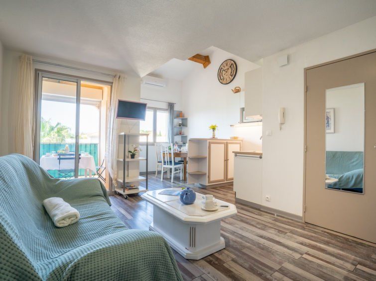 No need for a car, halfway between the sandy beach and the center. Quiet building. Well-equipped accommodation, just missing a washing machine and a blackout curtain in the living room when you sleep there. Staircase is steep. Refrigerator too small. TV reception problem. Shower tray slips and the wall needs replacing. The toilet is not suitable for a tall person or for someone who has had knee surgery. Parking not suitable for SUVs