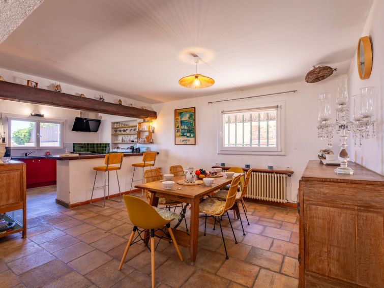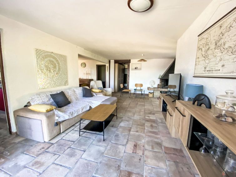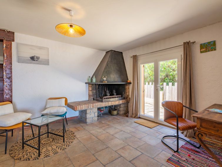 4-room house 95 m2, on the ground floor. Spacious, cosy furnishings: living/dining room with panoramic window with open-hearth fireplace (only for decoration), TV (flat screen), fan. Exit to the patio. 1 large room with 1 french bed (2 x 90 cm, length 200 cm), shower/WC and fan. 1 room with 2 beds (90 cm, length 190 cm), fan.