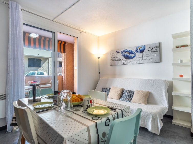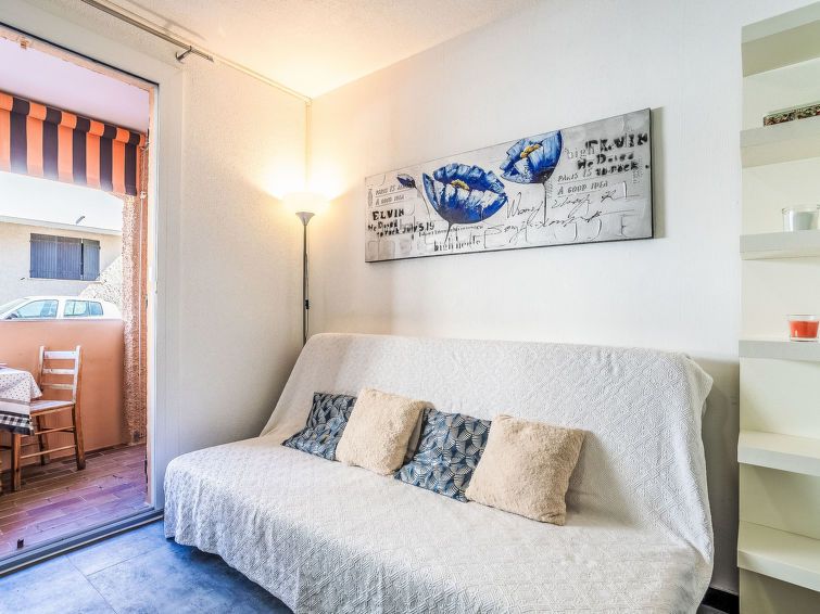 1-room apartment 20 m2, on the ground floor. Comfortable furnishings: entrance hall, without window with 1 x 2 bunk beds (80 cm, length 190 cm). Living/dining room with 1 double sofabed (140 cm, length 200 cm), TV (flat screen), air conditioning. Exit to the terrace. Kitchenette (2 hot plates, mini-oven, toaster, kettle, microwave, electric coffee machine).