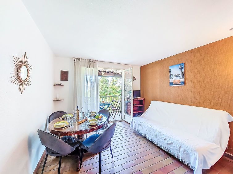 1-room studio 25 m2 on 2nd floor. Comfortable and beautiful furnishings: entrance hall, without window with 1 x 2 bunk beds (80 cm, length 190 cm). Living/dining room with 1 sofabed (140 cm, length 190 cm), TV (flat screen). Exit to the terrace. Kitchenette (2 hot plates, toaster, kettle, microwave, electric coffee machine).