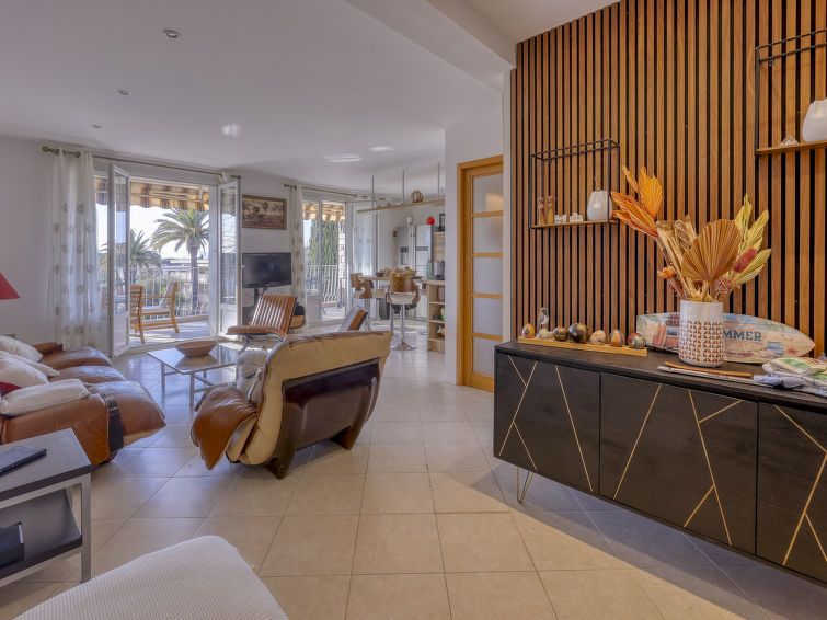 4-room apartment 73 m2 on 2nd floor. Comfortable and beautiful furnishings: living/dining room with TV (flat screen), air conditioning. Exit to the terrace. 1 room with 1 french bed (160 cm, length 190 cm). 1 room with 1 french bed (160 cm, length 190 cm). 1 room with 1 pull-out bed (2 pers.