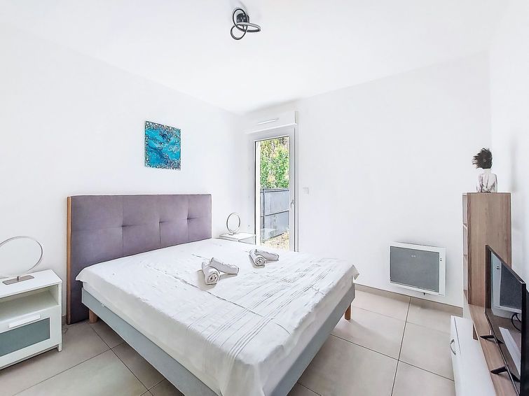 2-room apartment 41 m2, on the upper ground floor. Bright, comfortable and beautiful furnishings: living/dining room with 1 sofabed (140 cm, length 190 cm), TV (flat screen). Exit to the terrace. 1 room with 1 french bed (140 cm, length 200 cm), TV. Exit to the garden. Open kitchen (oven, dishwasher, 3 induction hot plates, toaster, kettle, freezer, electric coffee machine, Capsules for coffee machine (Nespresso) extra).