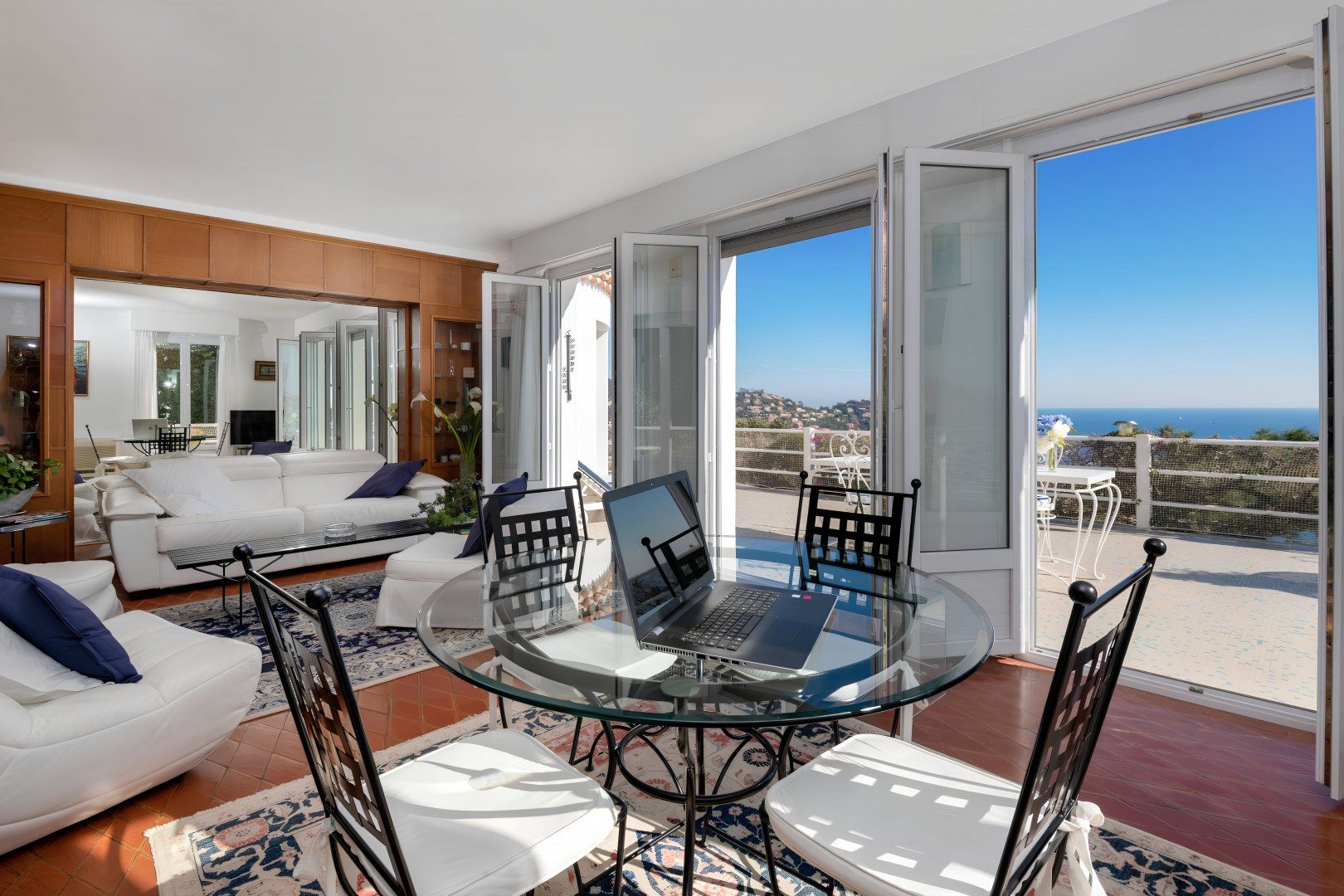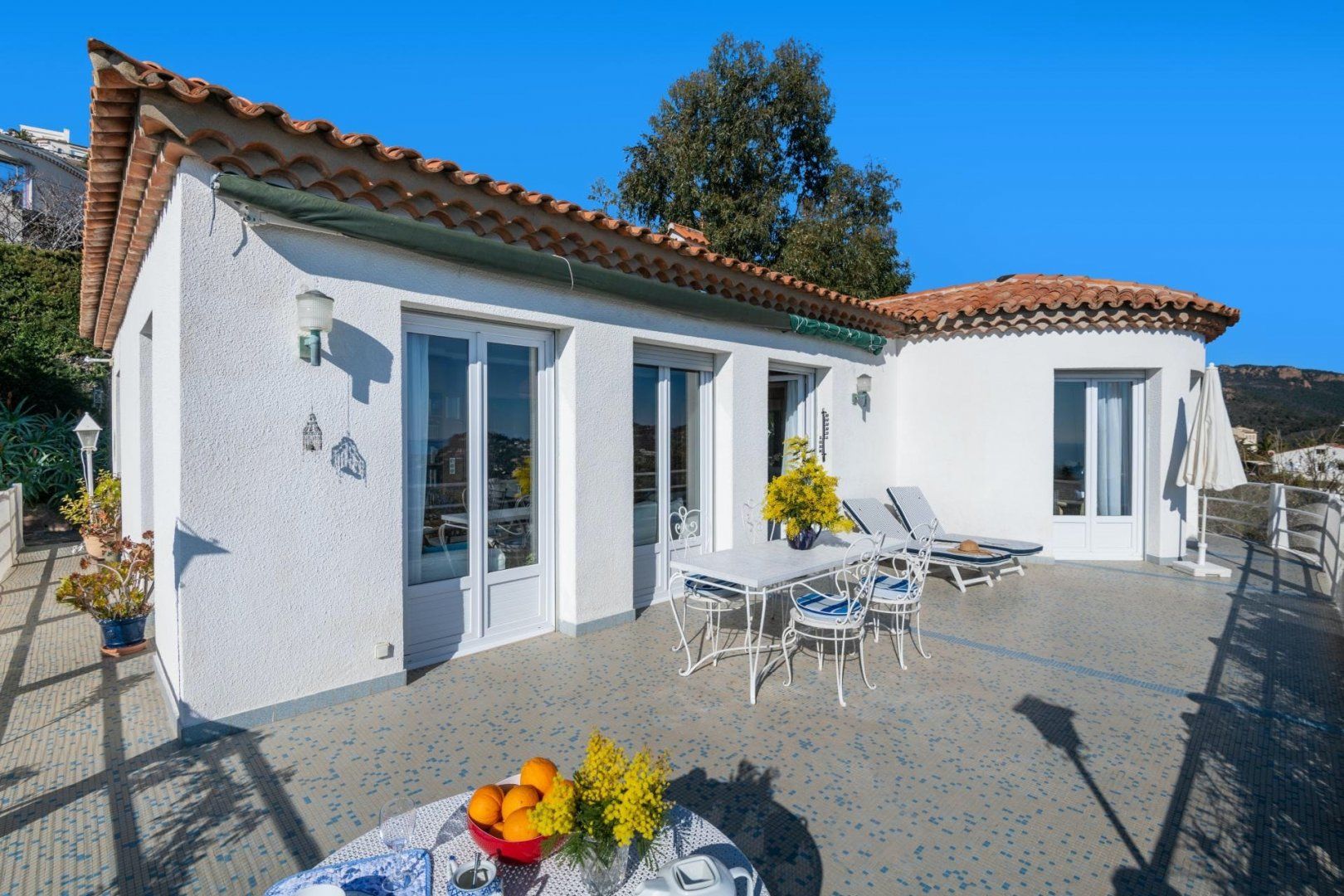 Sweeping views over the Mediterranean Sea towards the Lérins Islands await from this hillside home’s sunny terrace and oval-shaped pool. Outdoor seating invites you to feast on the vistas over alfresco meals, while inside, the scenery can still be enjoyed from the plethora of French doors. While the decor here is on the functional side, the open-plan living area is perfect for socialising, and the main bedroom’s terrace access is a nice touch. When you’re ready to explore, walk fifteen minutes down the hill to the beach of 'La Figueirette' where you can rent watersports equipment for a day of seaside fun, or hop in the car to visit Saint-Raphaël and Cannes, both well worth a day-trip.