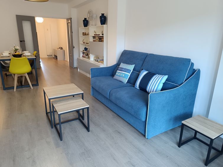3-room apartment 85 m2 on 4th floor. Renovated in 2023: living/dining room with TV and flat screen. Exit to the loggia. 1 room with 1 french bed (1 x 140 cm, length 200 cm), TV, flat screen, electric heating and fan. 1 room with 1 bed (160 cm, length 200 cm), TV, flat screen, electric heating and fan.