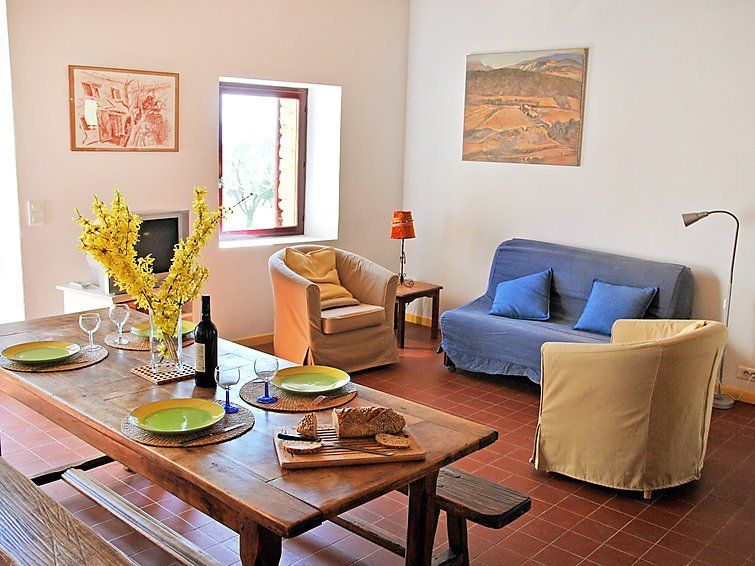 3-room house 80 m2 on 2 levels. Beautiful furnishings: living/dining room with 1 double sofabed, TV and wood-burning stove. Exit to the terrace. Kitchenette (4 hot plates, oven, dishwasher, microwave). Oil heating. Upper floor: 1 room with 1 french bed (160 cm). 1 room with 2 beds.