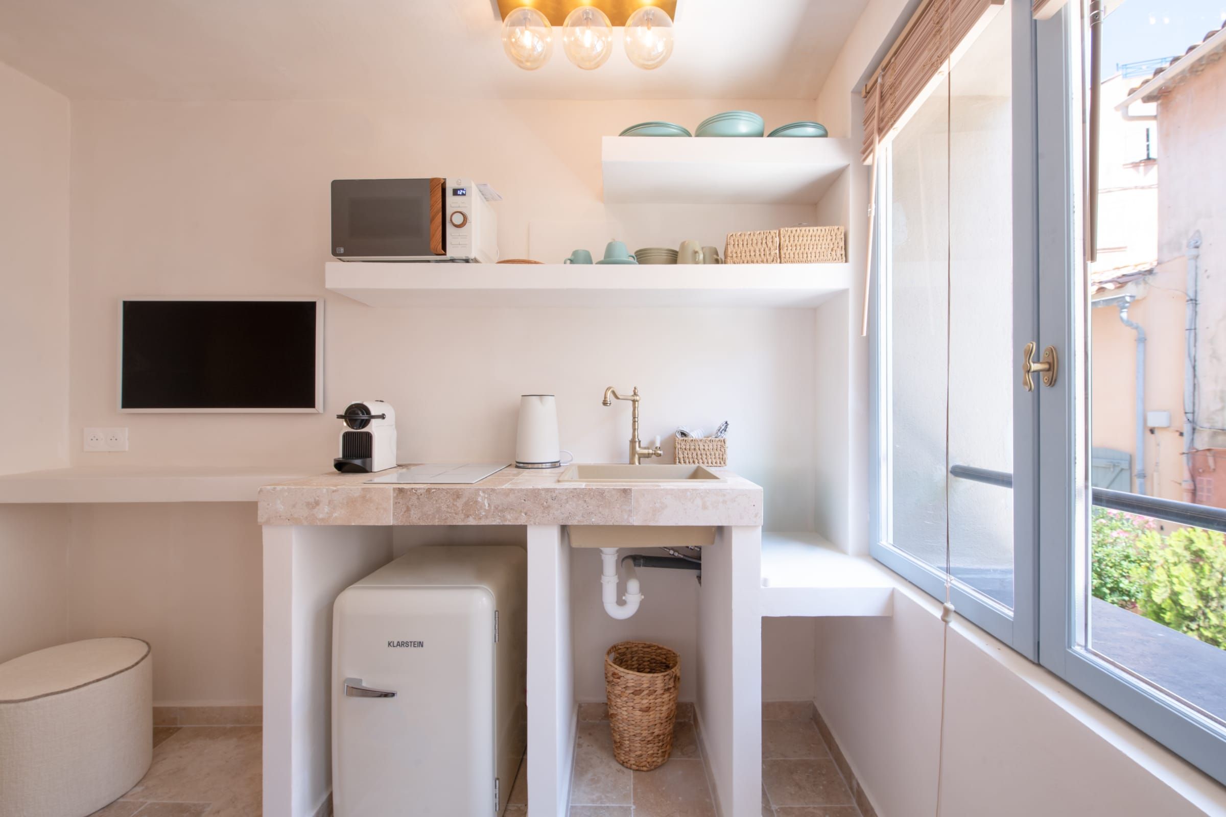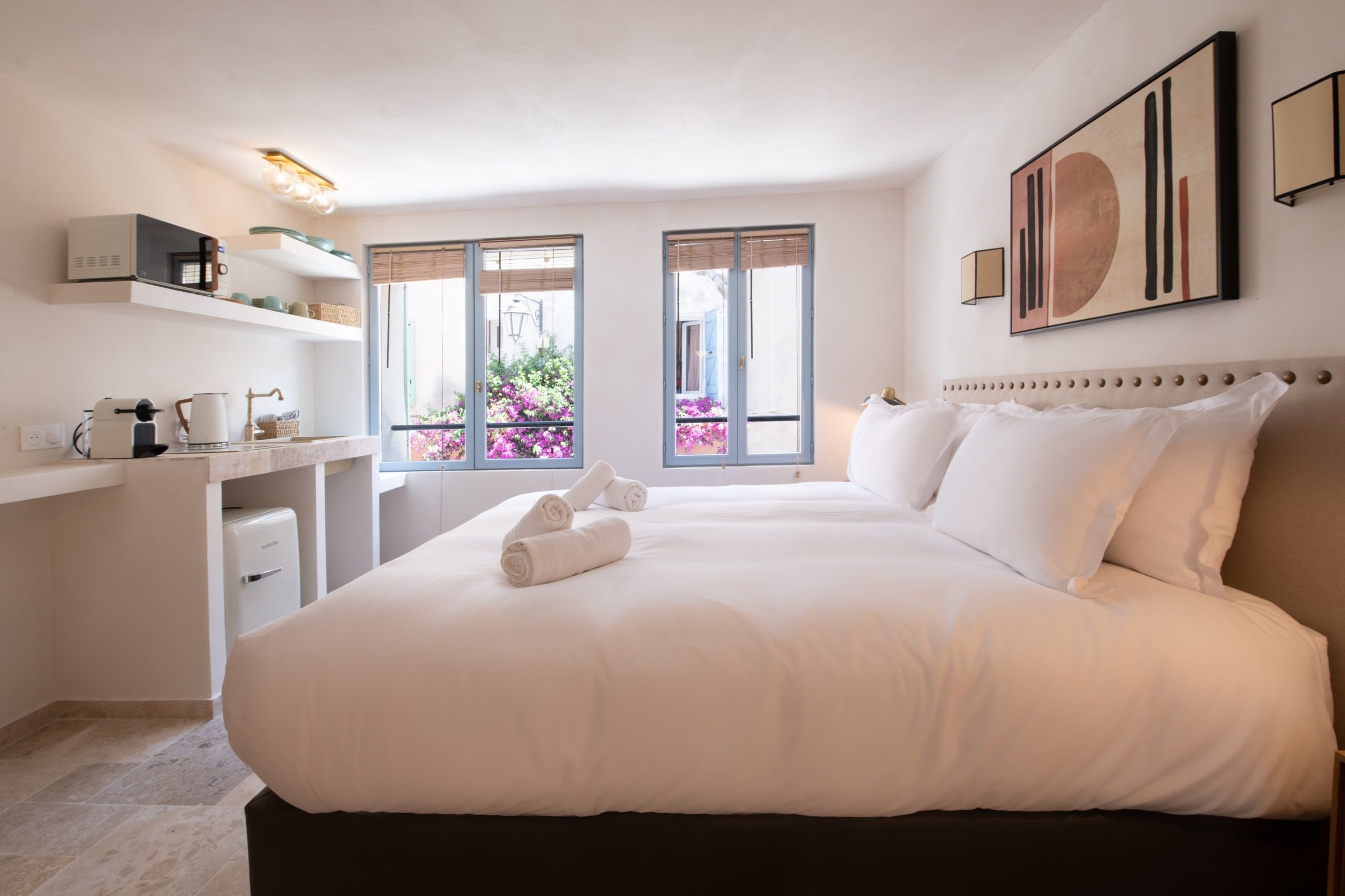 Tucked away in the cobbled streets of Saint-Tropez’s old town, this studio feels more like a boutique hotel room – but with thoughtful extras to make your stay that bit easier. The addition of a microwave and hob means you can whip up simple breakfasts or light bites before heading out to wander. Step outside and you’re moments from the port, Place des Lices, and the village’s legendary cafes and boutiques. Compact yet perfect for resting your head between Riviera exploring, we think it’s a great base for two in the heart of the action.