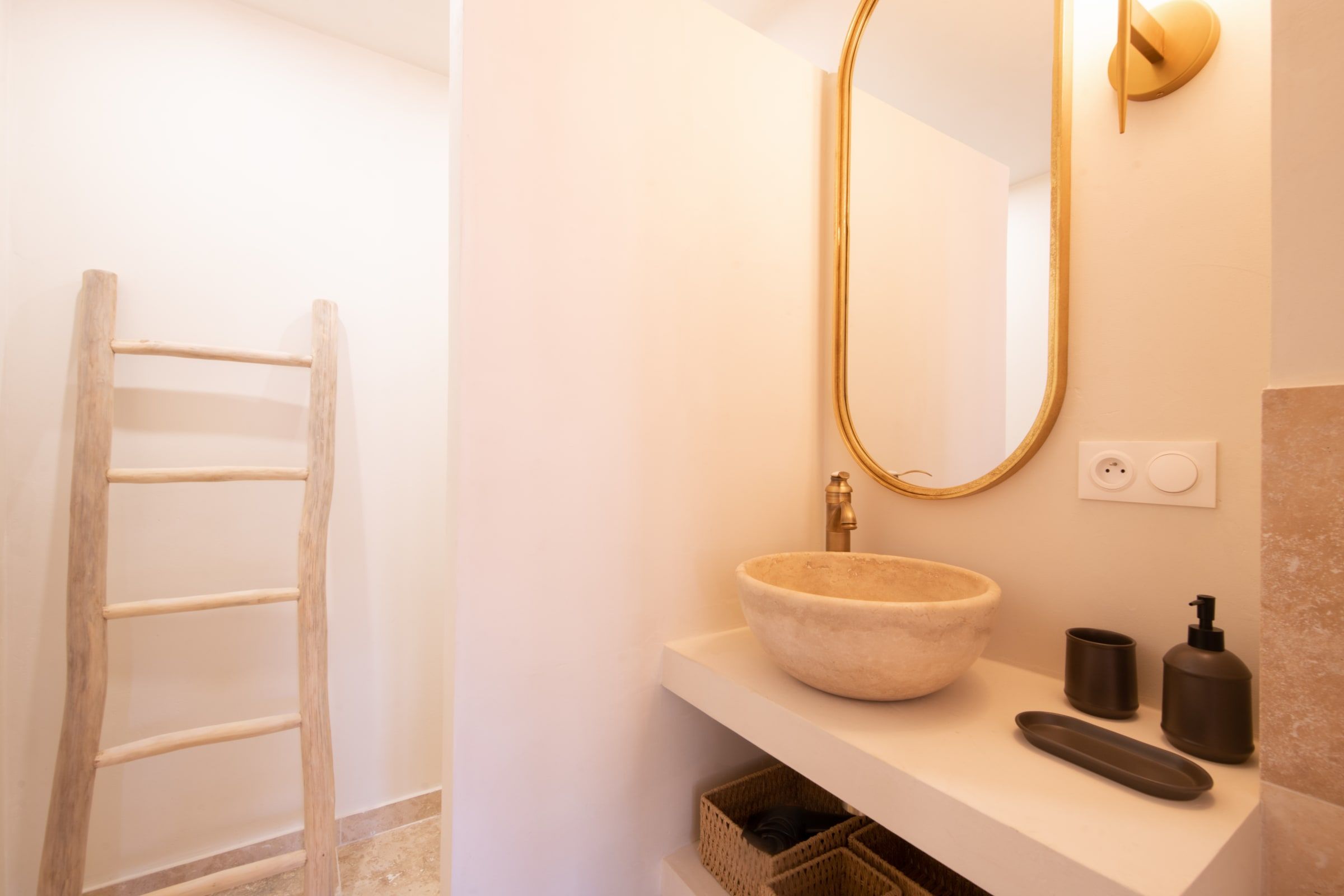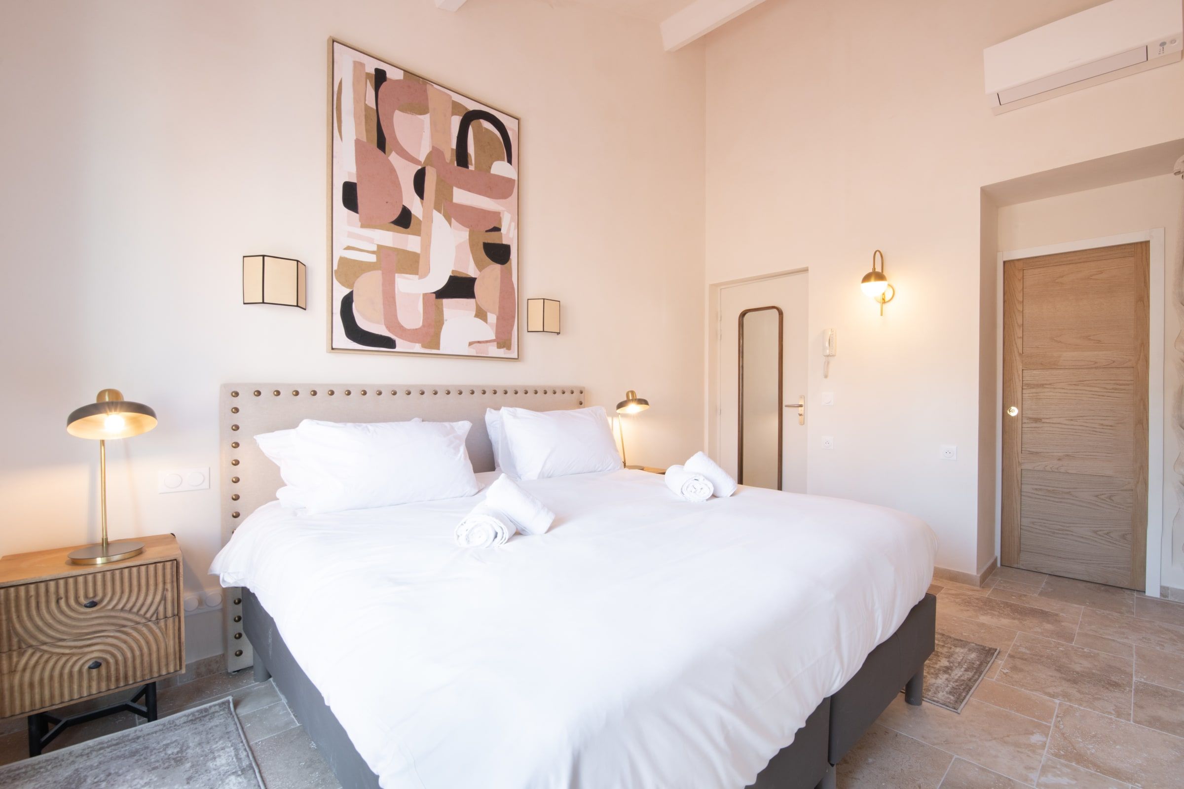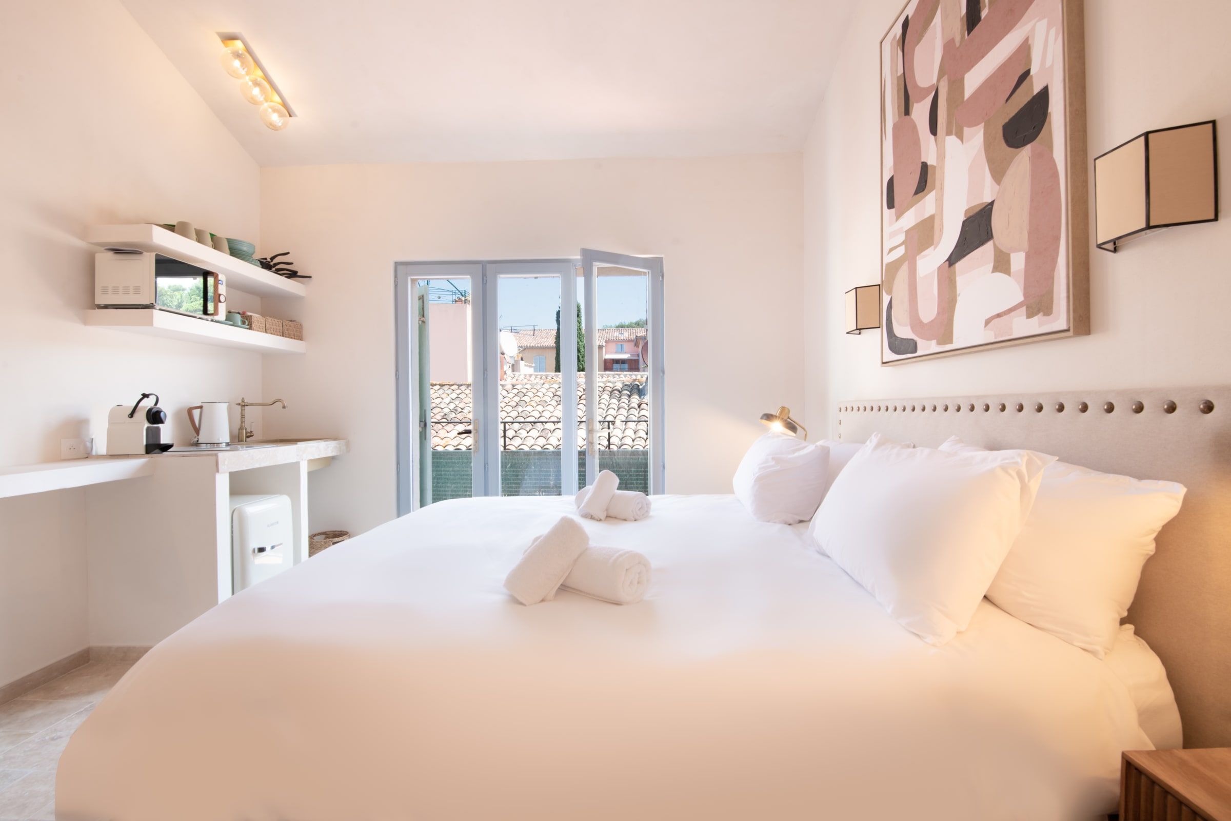 Found at the very heart of Saint-Tropez, this elegant studio is compact by nature, but filled with pleasant touches. Every one of its twenty square metres is put to use, with the primary living area featuring a king-size bed, classy furnishings, a diminutive kitchen that finds room for a sink, fridge and hob, plus a wall-mounted smart TV reminiscent of a hotel. The bathroom is also well appointed, while the balcony provides charming views and some welcome circulation. The home really is at the centre of town, allowing you to reach Place des Lices, Tour Portalet, Annonciade Museum, and the Citadelle in around five minutes on foot.