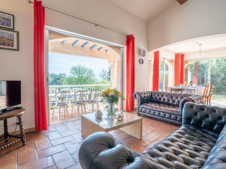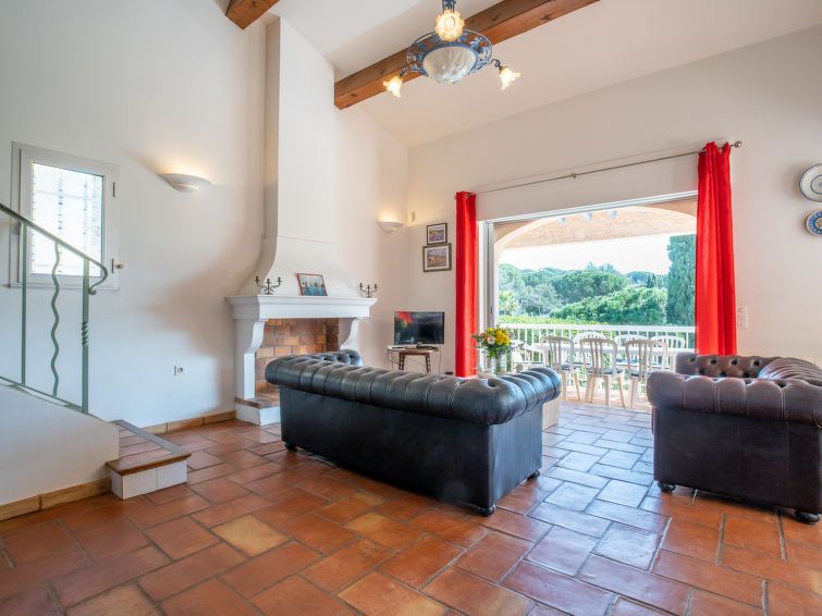 "Bartavelle", 5-room house 220 m2 on 2 levels. Rustic furnishings: upper floor: living/dining room with open-hearth fireplace (only for decoration), dining table and TV. Exit to the balcony. 1 room with 1 french bed (180 cm, length 200 cm). 1 room with 1 french bed (160 cm, length 200 cm).