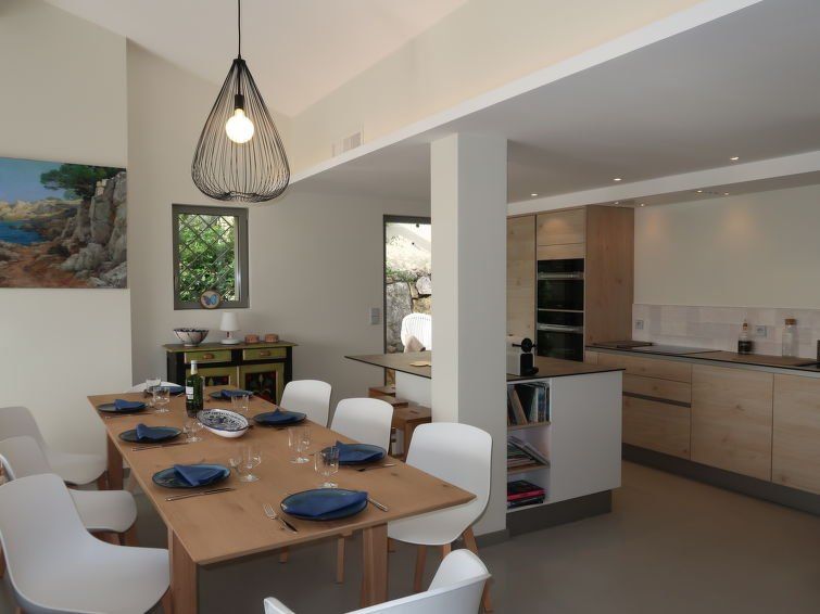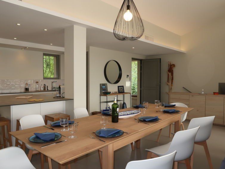 6-room house 150 m2 on 2 levels. Renovated in 2020, modern and tasteful furnishings: entrance hall. Living/dining room with dining table and TV. Exit to the terrace. Open kitchen (oven, dishwasher, 4 induction hot plates, toaster, kettle, microwave, freezer, electric coffee machine).