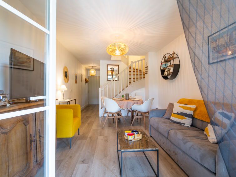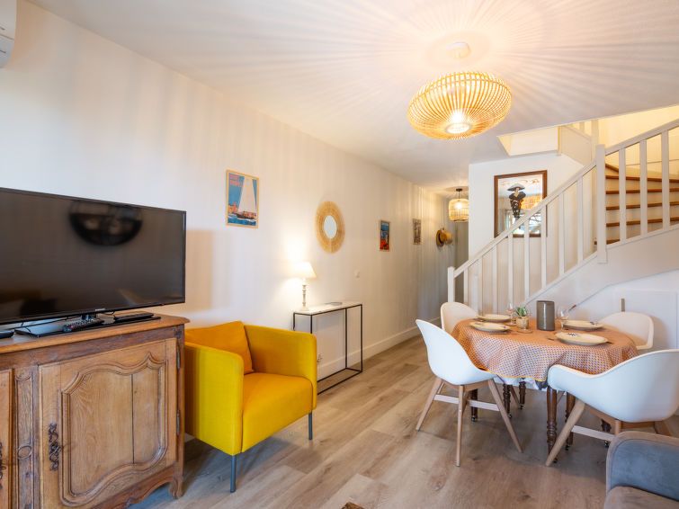 3-room terraced house 50 m2. Beautiful furnishings: entrance hall with separate WC. Living/dining room with TV (flat screen). Exit to the terrace. Kitchenette (oven, dishwasher, 4 induction hot plates, toaster, kettle, microwave, freezer, electric coffee machine). Air-conditioning.