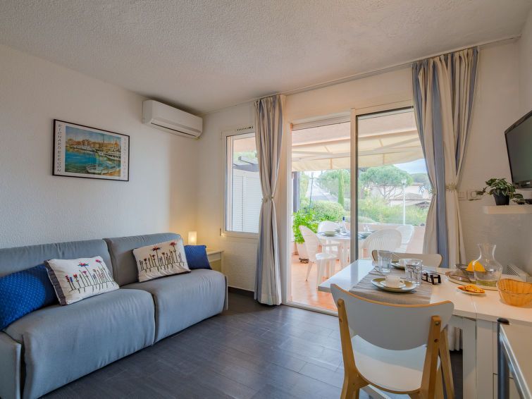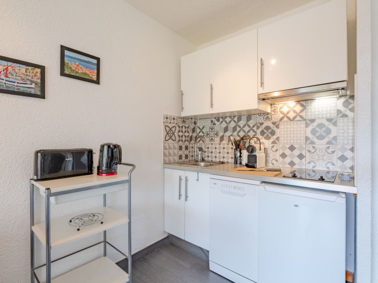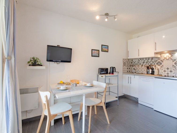 1-room studio 21 m2, on the ground floor. Beautiful furnishings: entrance hall with 1 x 2 bunk beds (80 cm, length 190 cm). Living/dining room with 1 double sofabed (140 cm, length 190 cm), TV (flat screen). Exit to the terrace. Kitchenette (dishwasher, 2 induction hot plates, toaster, kettle, electric coffee machine).