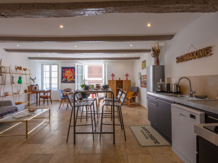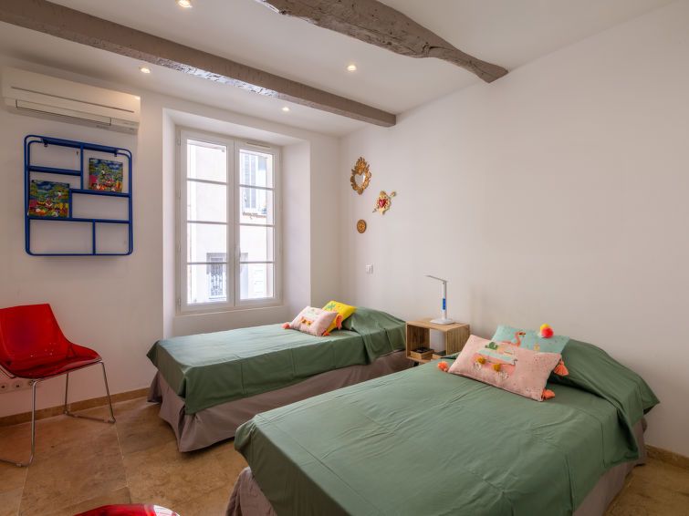 3-room apartment 60 m2 on 1st floor, south facing position. Spacious and bright, beautiful furnishings: living/dining room with TV (flat screen). Exit to the balcony. 1 room with 1 french bed (140 cm, length 200 cm). 1 room with 2 beds (80 cm, length 190 cm). Open kitchen (oven, dishwasher, 4 induction hot plates, toaster, kettle, freezer, electric coffee machine).