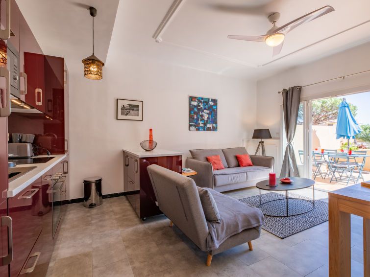 2-room apartment 40 m2, on the upper ground floor, south facing position. Beautiful furnishings: living/dining room with 1 double sofabed (1 x 140 cm, length 190 cm), TV (flat screen). Exit to the balcony. 1 room with 1 french bed (1 x 140 cm, length 190 cm). Open kitchen (oven, dishwasher, 4 ceramic glass hob hotplates, toaster, kettle, microwave, freezer, electric coffee machine).