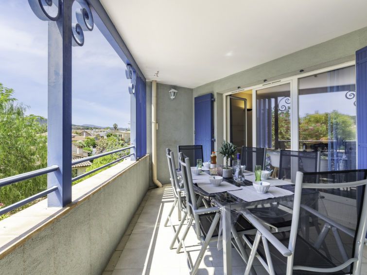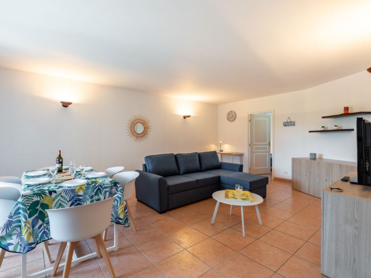 4-room apartment 92 m2 on 1st floor, south-west facing position. Comfortable furnishings: living/dining room, window onto the courtyard with TV (flat screen), air conditioning. Exit to the terrace. 2 rooms, each room with 1 french bed (140 cm, length 190 cm). 1 room with 1 french bed (160 cm, length 200 cm), shower/WC.