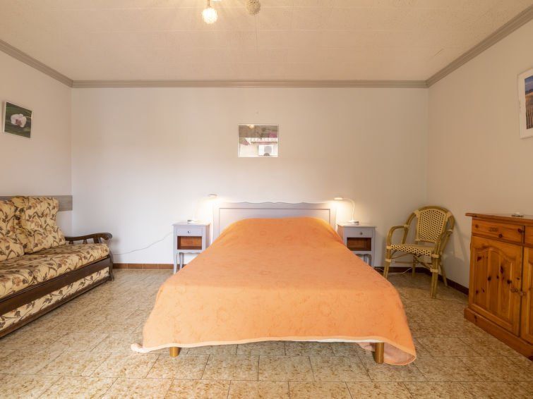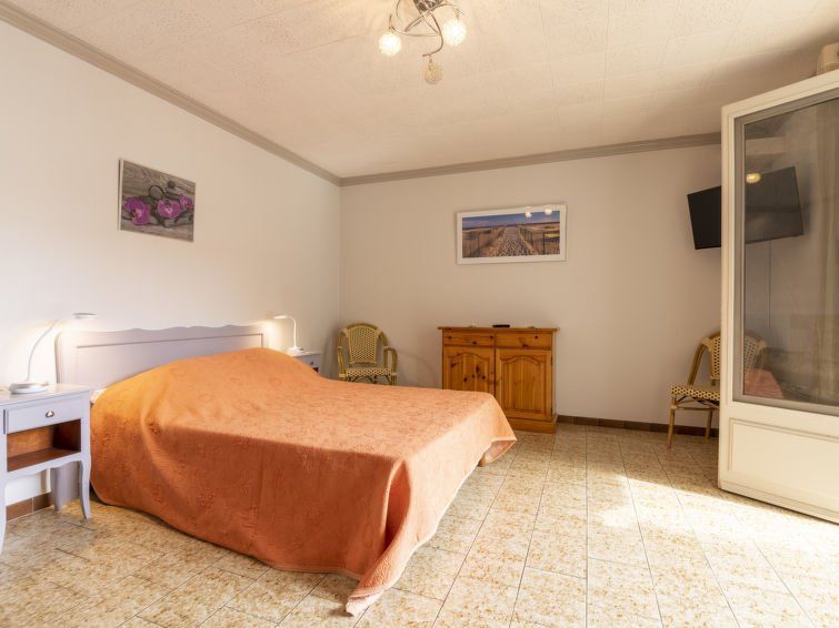 "Le Soleil Camarguais", 2-room apartment 50 m2 on 1st floor. Simple and practical furnishings: 2 rooms, each room with 1 french bed (140 cm, length 190 cm). Exit to the balcony. Kitchen-/living room (oven, 4 ceramic glass hob hotplates, toaster, kettle, microwave, freezer, electric coffee machine) with dining table.