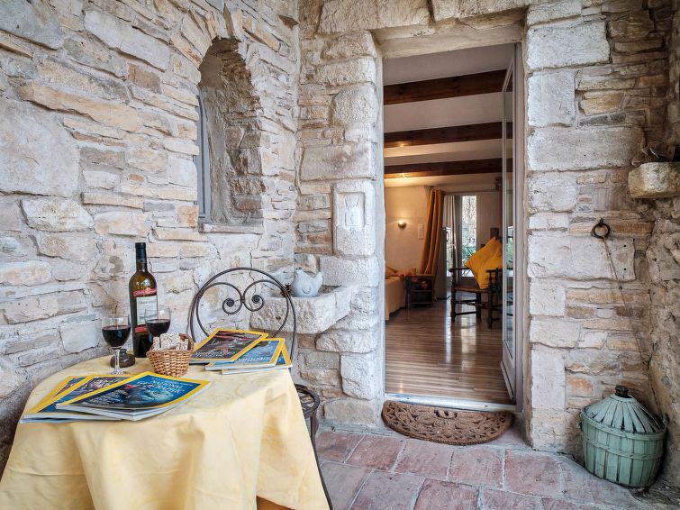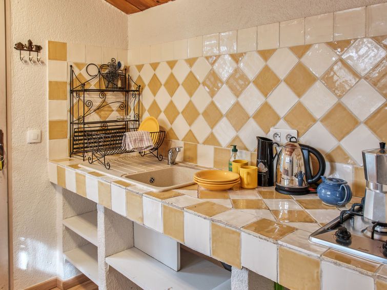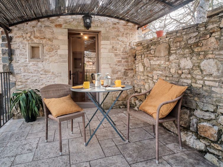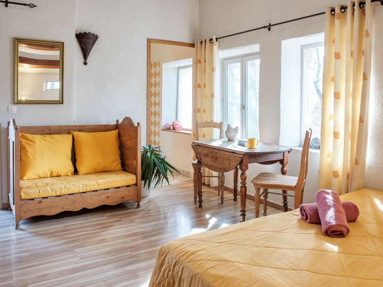 "Giono", 1-room studio 30 m2. Renovated, rustic and cosy furnishings: living/sleeping room with 2 beds (100 cm, length 200 cm). Exit to the terrace. Small kitchenette (2 gas rings, toaster, kettle, microwave, electric coffee machine, Capsules for coffee machine (Nespresso) extra) with dining table.