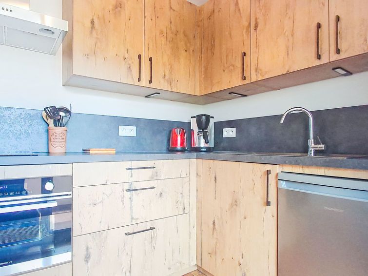 1-room studio 35 m2 on 1st floor. Beautiful furnishings: living/dining room with 1 sofabed (140 cm, length 190 cm), TV (flat screen). Exit to the terrace. Kitchen (1 induction hot plates, 2 gas rings, toaster, kettle, electric coffee machine, combination microwave). Exit to the terrace.