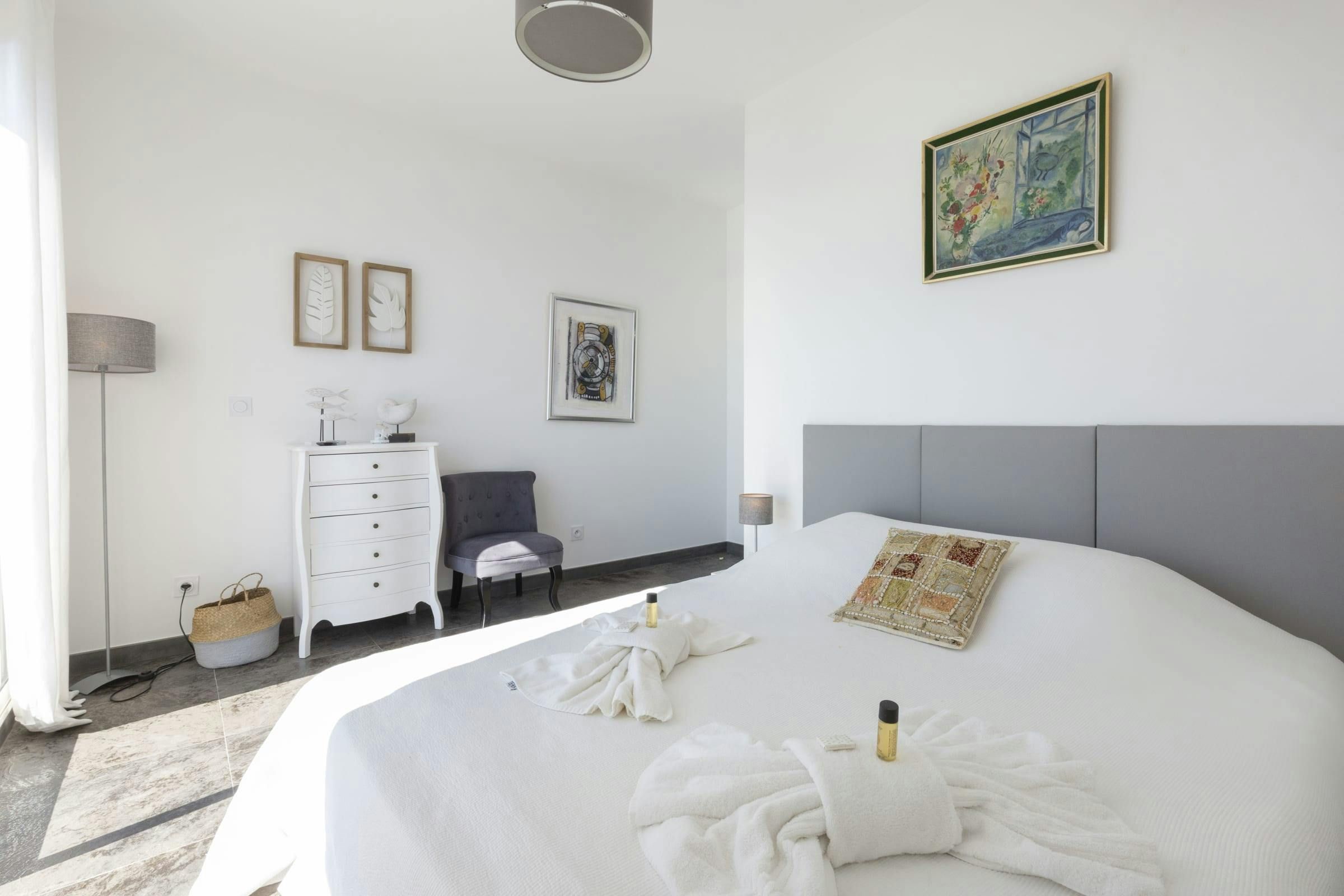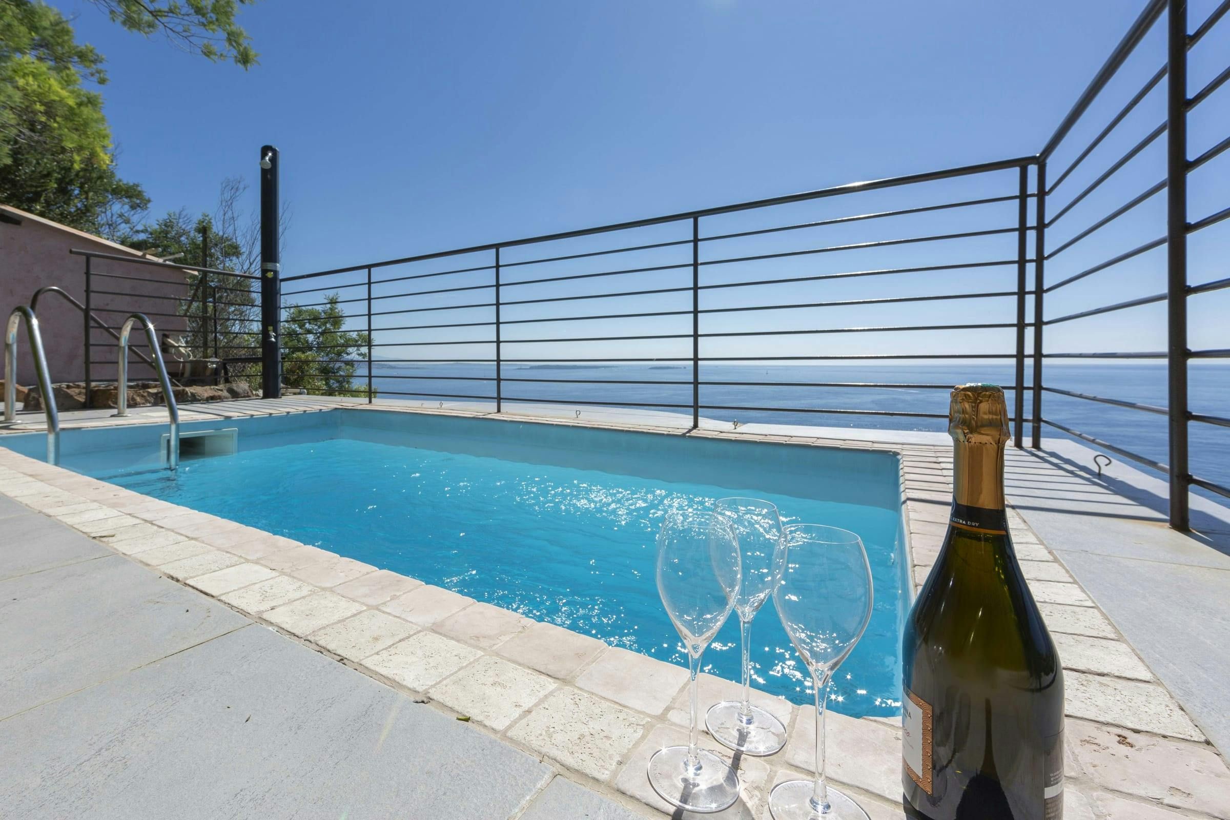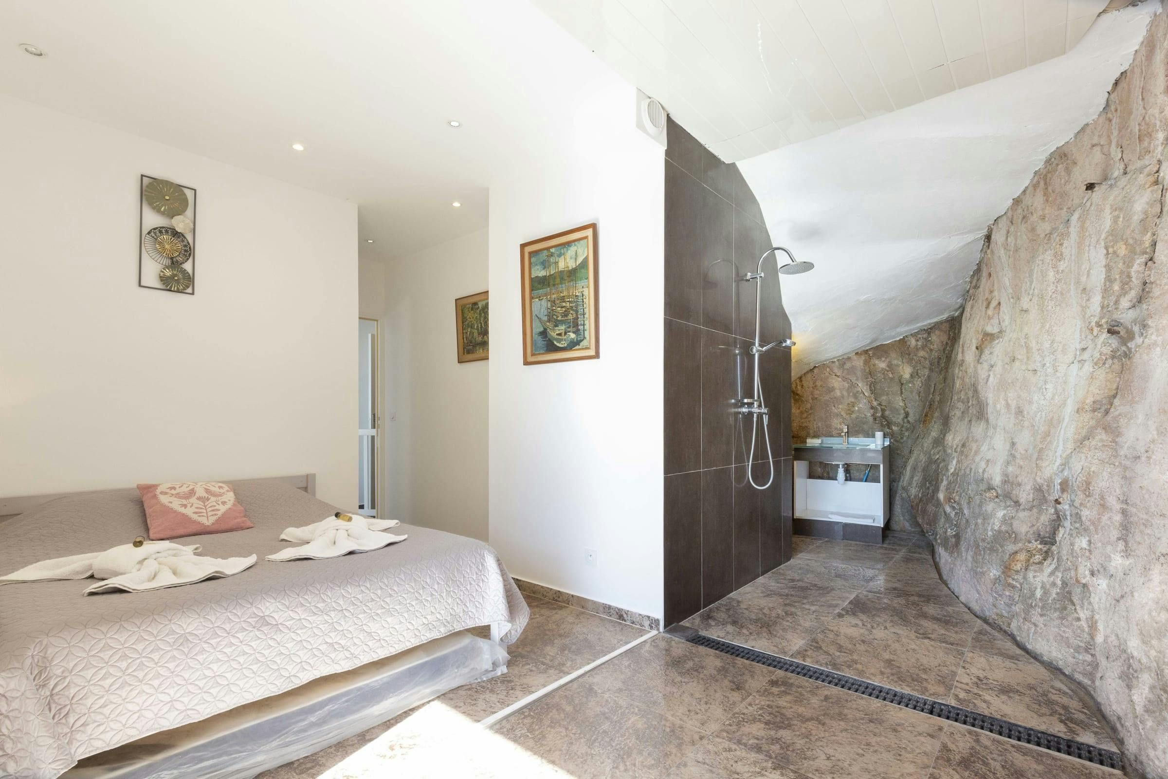 Talk about a room with a view – or several. Perched high in the Estérel hills, this four-story villa serves up breathtaking vistas from almost every level. Take them in from the balconies, over alfresco lunches on the terrace, or best of all, from the rooftop pool and solarium. One ensuite even looks like it’s carved straight from the cliffside (dibs on that room). When you’re ready to head out, Theoule-sur-Mer’s beaches, bistros, and bars are just a short drive away.