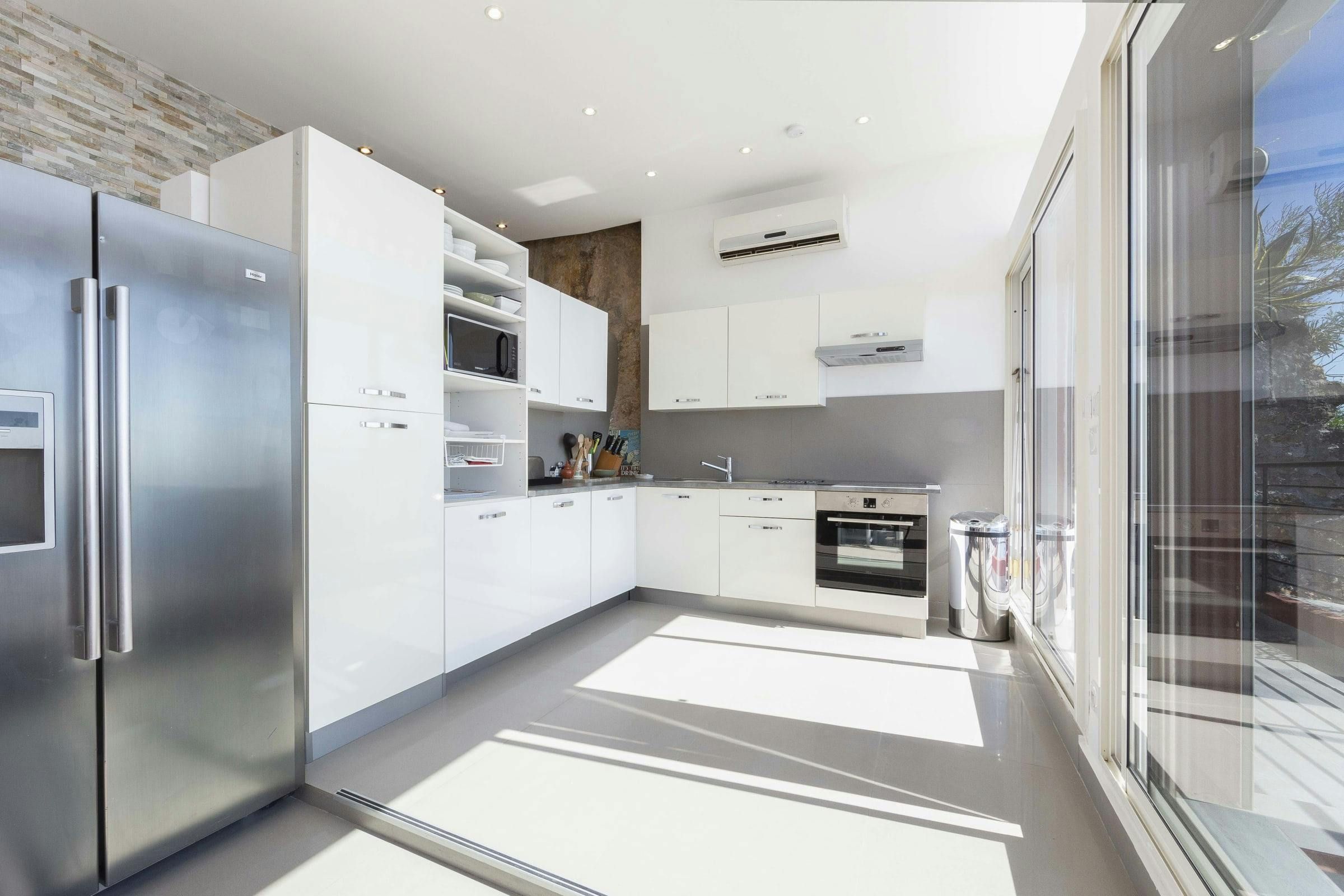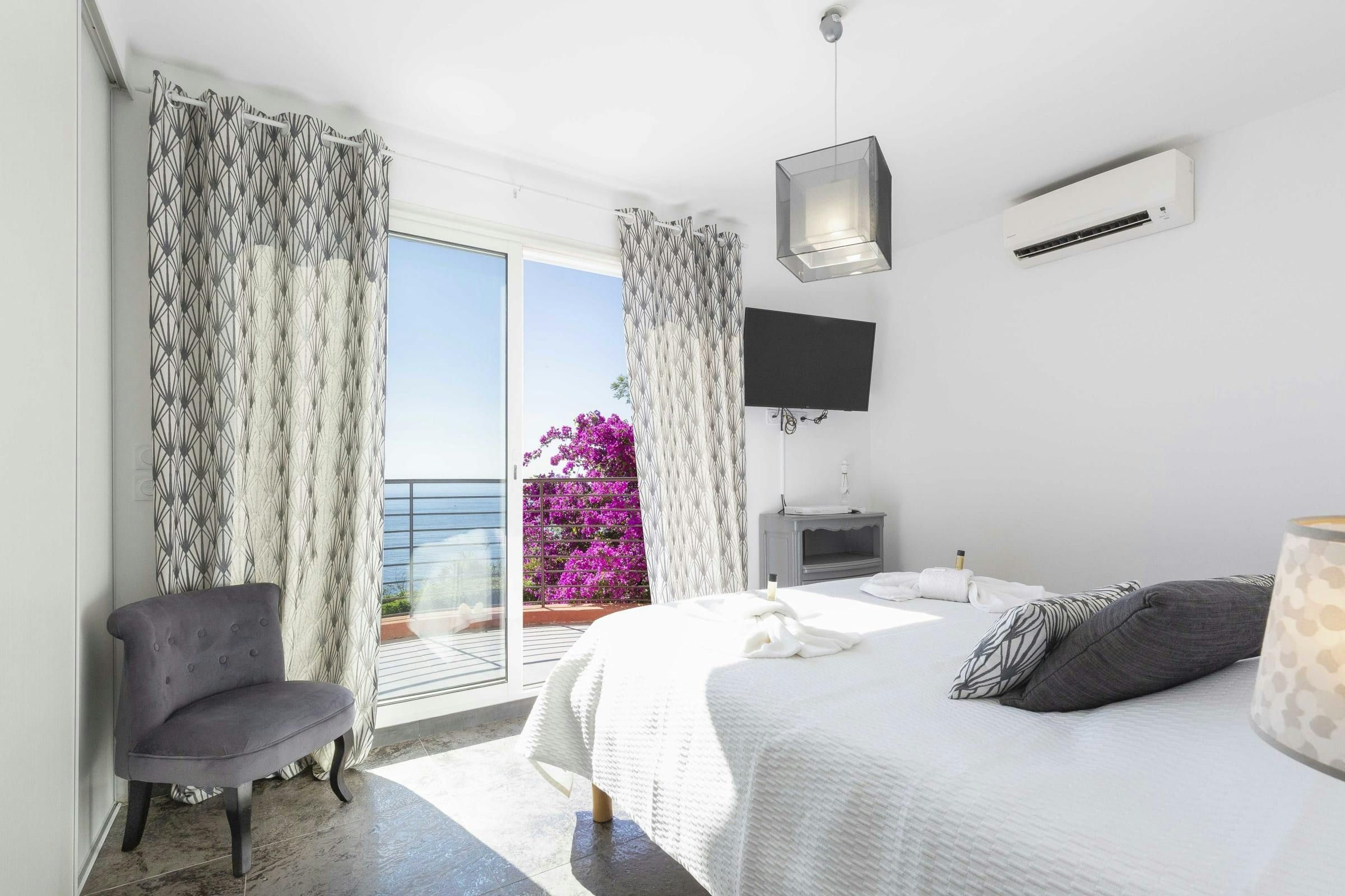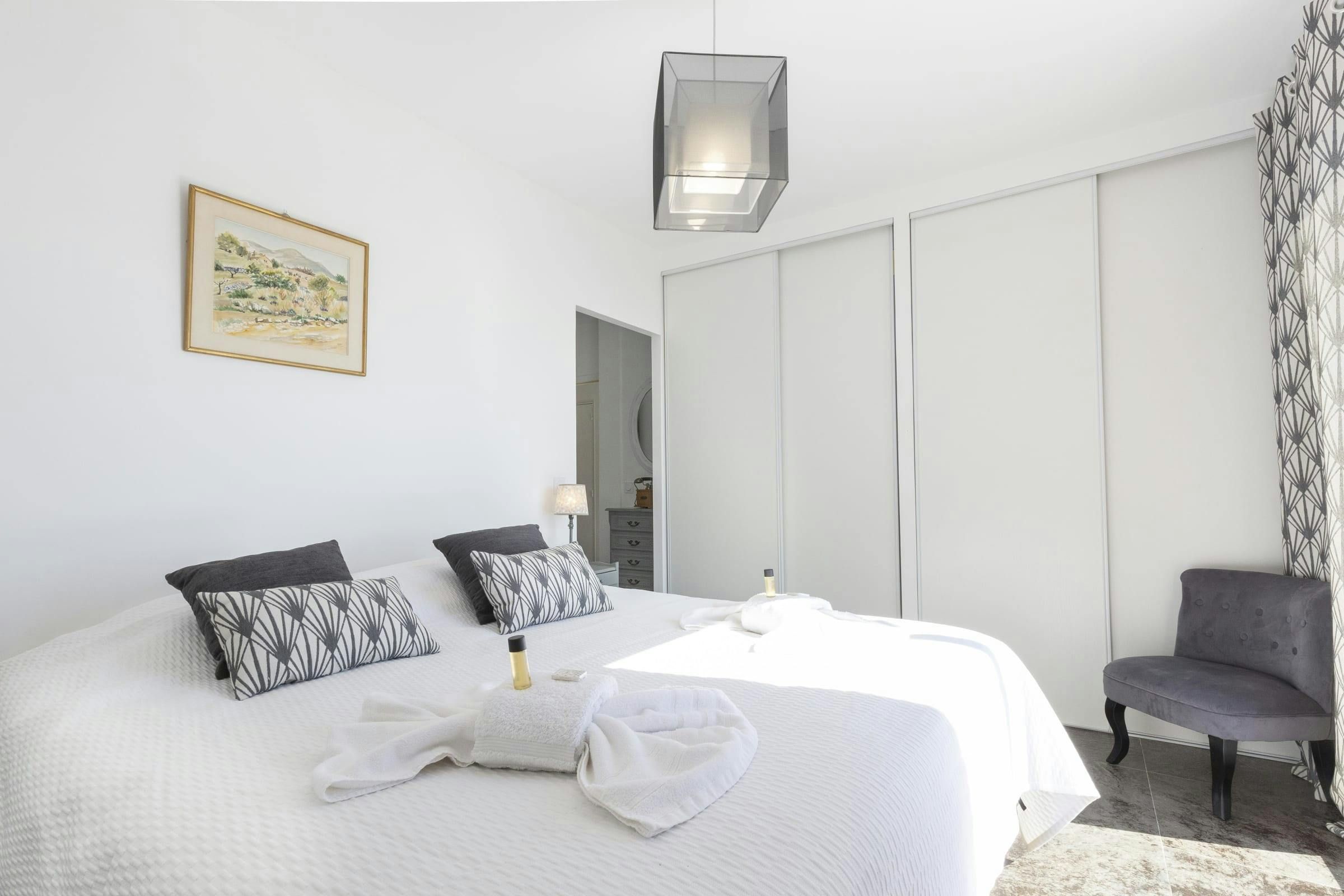 Talk about a room with a view – or several. Perched high in the Estérel hills, this four-story villa serves up breathtaking vistas from almost every level. Take them in from the balconies, over alfresco lunches on the terrace, or best of all, from the rooftop pool and solarium. One ensuite even looks like it’s carved straight from the cliffside (dibs on that room). When you’re ready to head out, Theoule-sur-Mer’s beaches, bistros, and bars are just a short drive away.