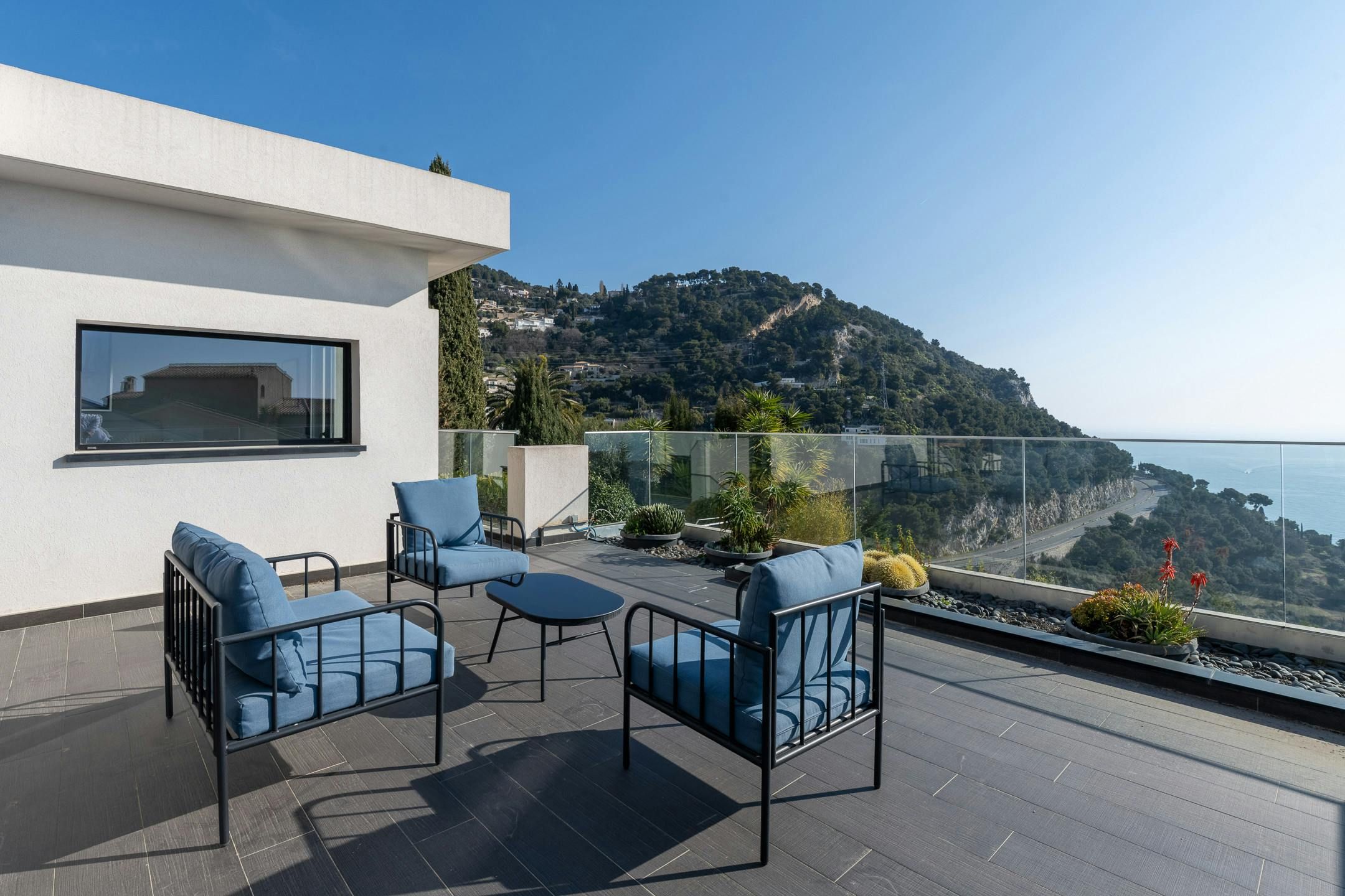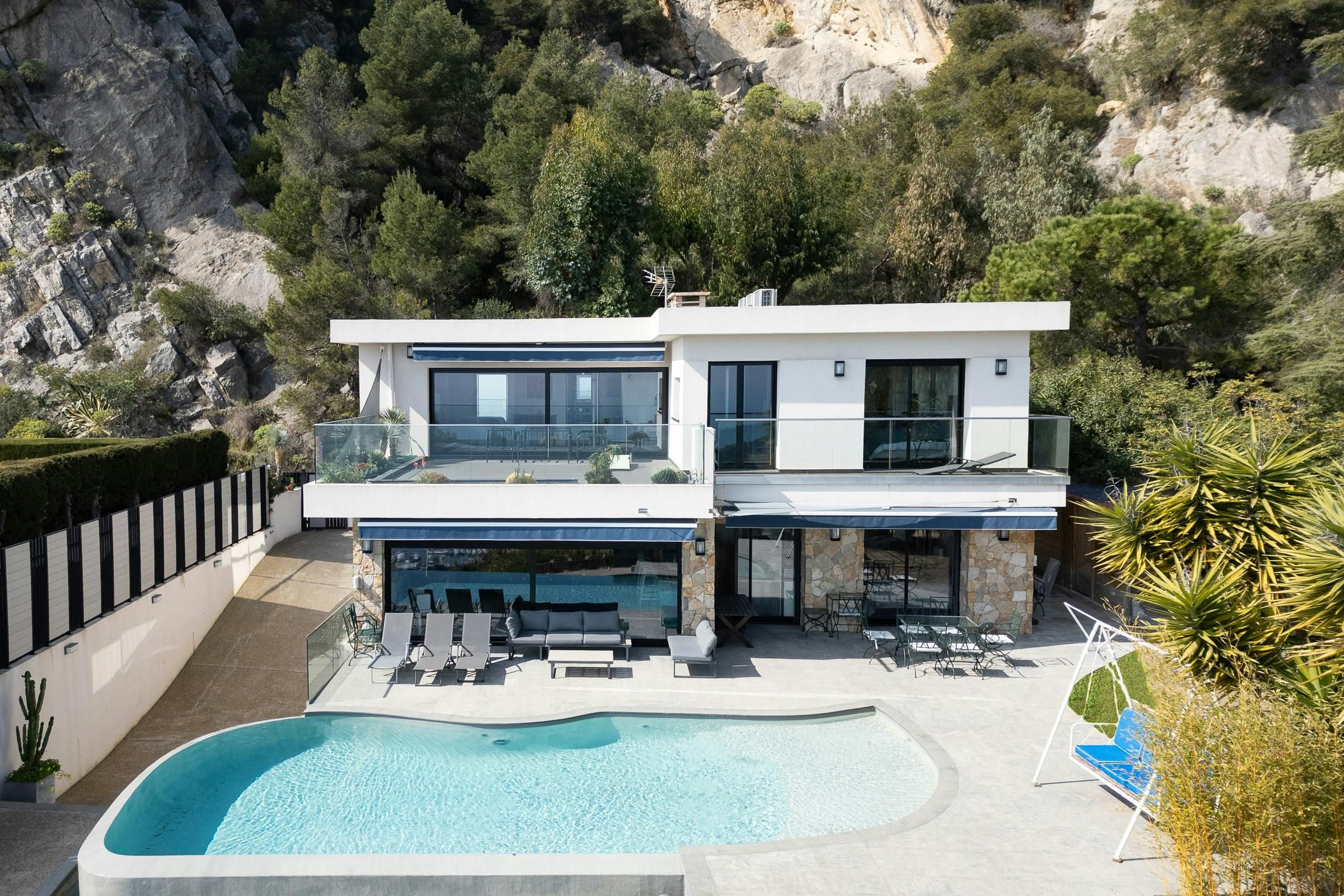 You’ll find this contemporary home nestled in the hills of Villefranche-sur-Mer. Outside, there are stunning views from the private heated pool and there’s a terrace with a barbecue for magical evening meals. Inside, the rooms are fresh, minimal and well suited to families with three floors offering an abundance of space to stretch out. There’s also a cinema room with a projector for movie screenings. Private parking is available and it’s just a short drive to the nearest beaches as well as the vibrant heart of Nice.
