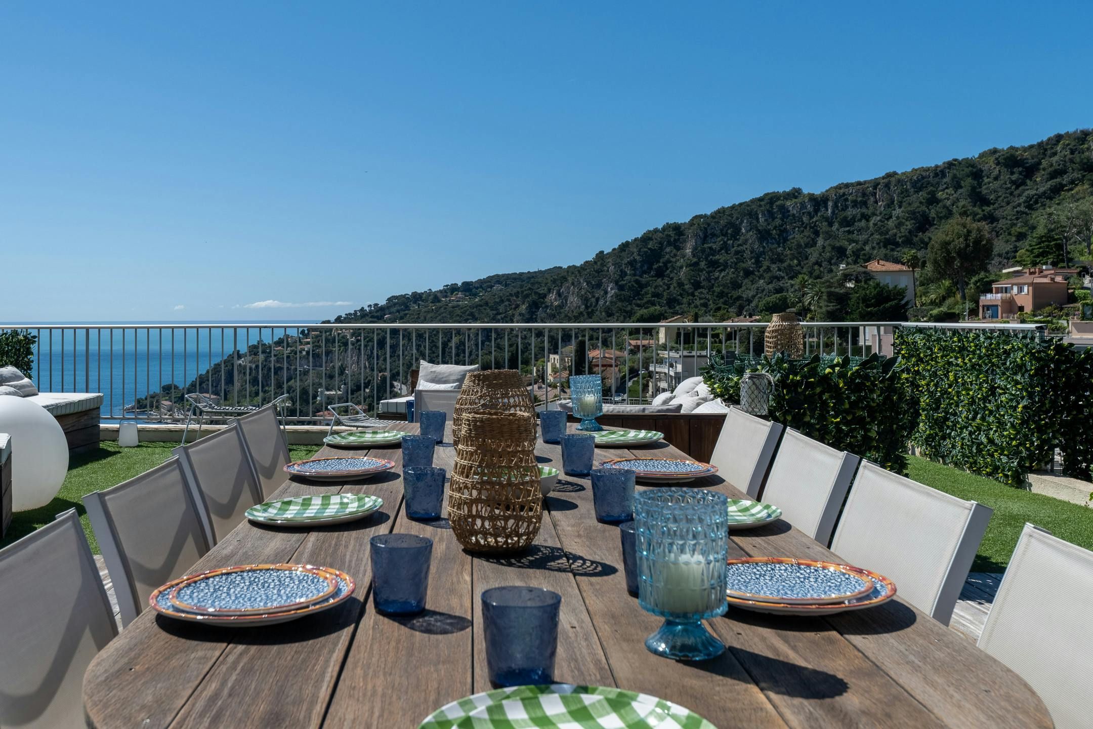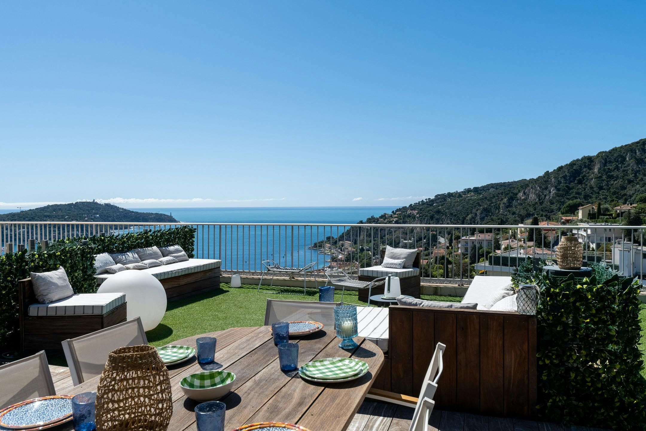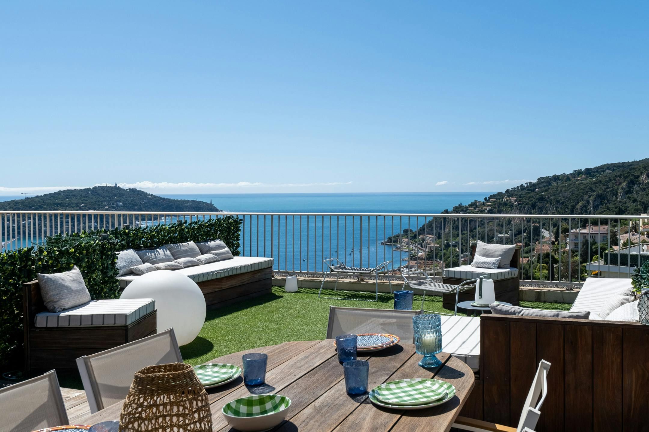 Perched above Villefranche-sur-Mer, this top-floor apartment delivers Riviera living at its finest. With a private 90-square-metre rooftop terrace, panoramic views over Cap Ferrat, and designer-curated interiors, it’s a sun-soaked sanctuary that sits prettily between Nice and Monaco. Enjoy your morning coffee as the Mediterranean glistens below or sip wine under the stars after a day exploring the coast. Keen to explore the coast? The harbour, beach, and charming old town of Villefranche are all within a leisurely ten-minute walk. Or, hire a car to explore even more of the Cote d’Azur effortlessly.