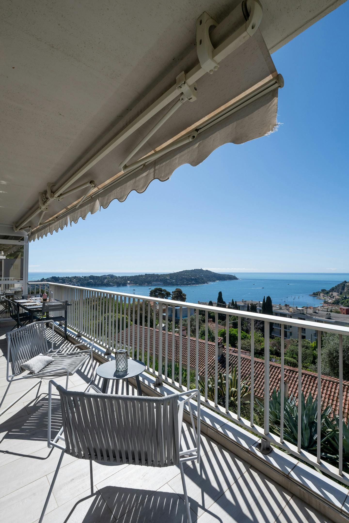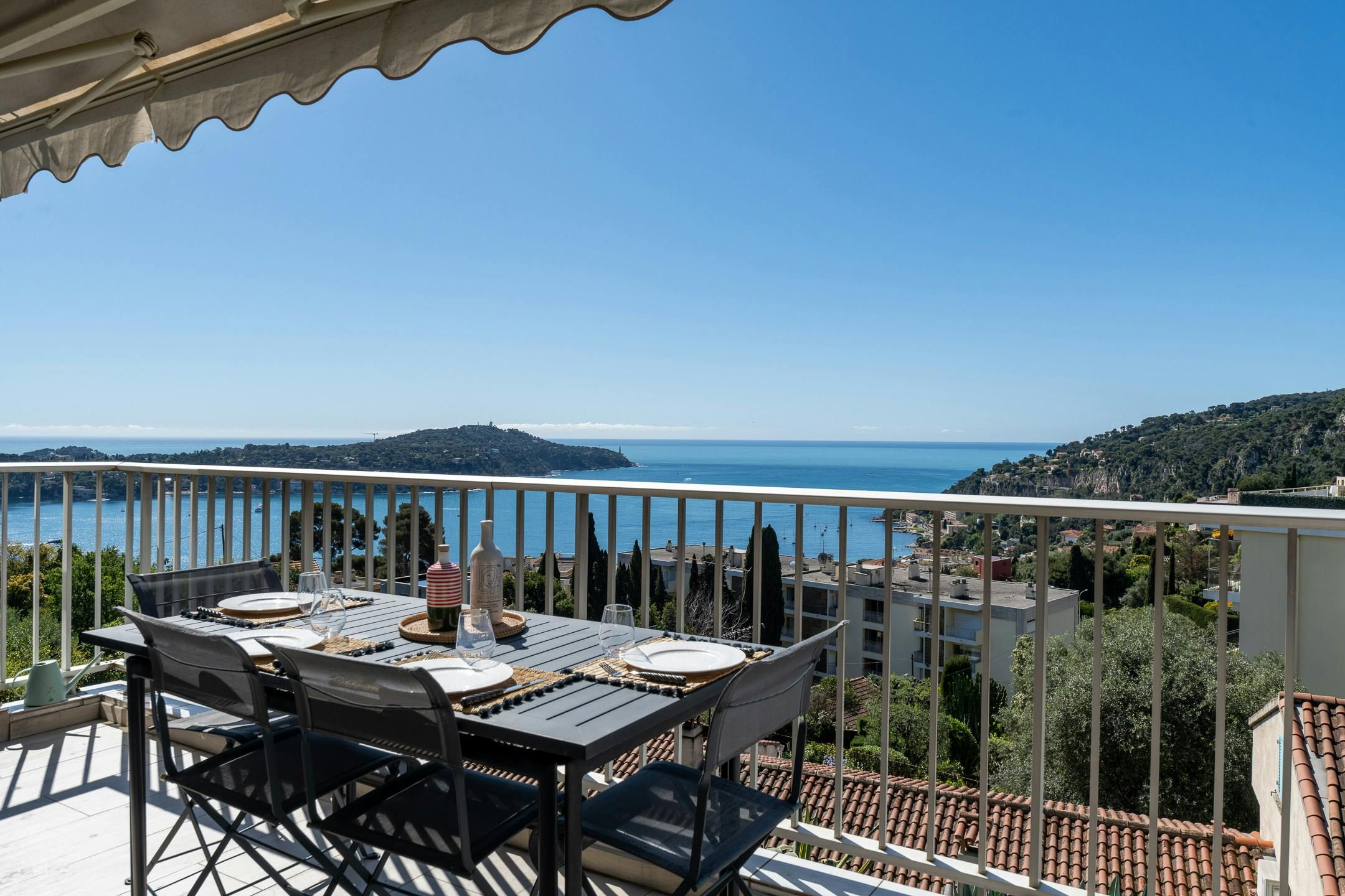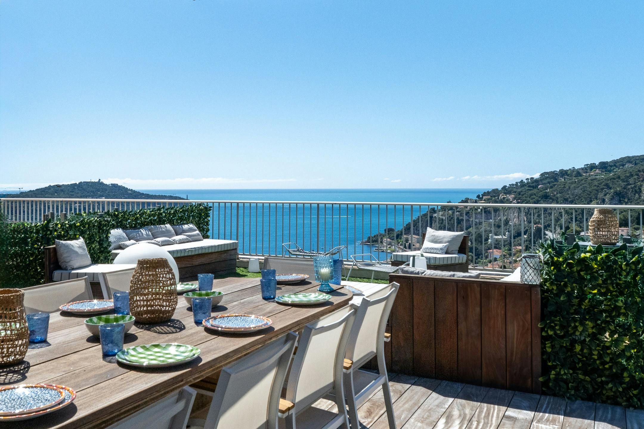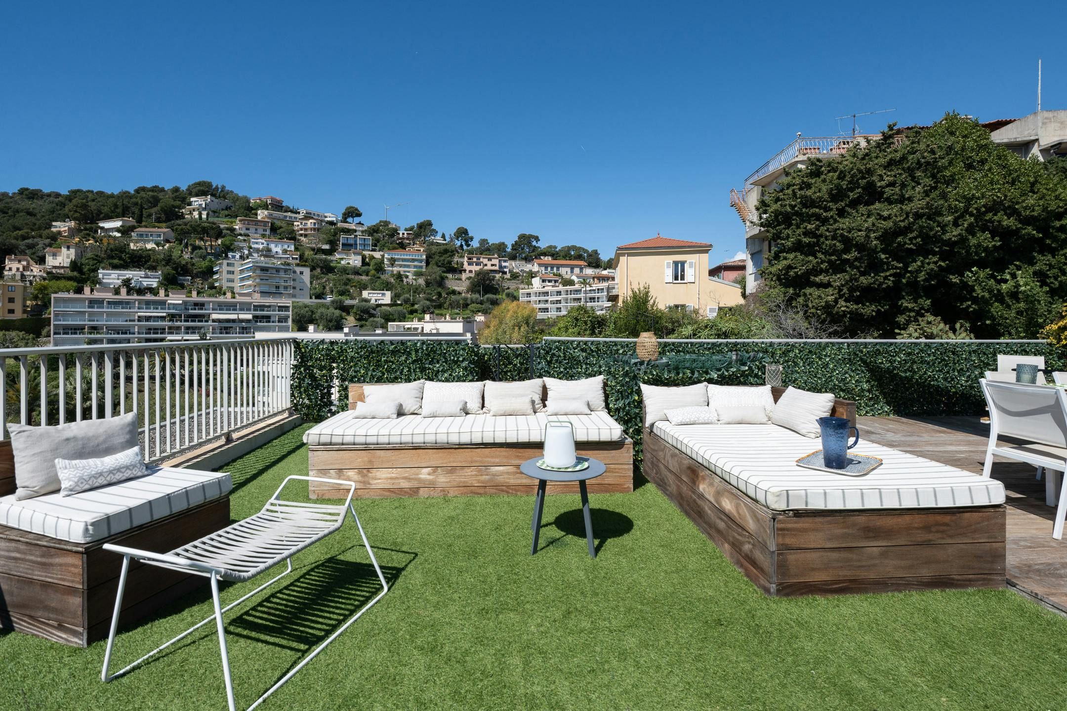 Perched above Villefranche-sur-Mer, this top-floor apartment delivers Riviera living at its finest. With a private 90-square-metre rooftop terrace, panoramic views over Cap Ferrat, and designer-curated interiors, it’s a sun-soaked sanctuary that sits prettily between Nice and Monaco. Enjoy your morning coffee as the Mediterranean glistens below or sip wine under the stars after a day exploring the coast. Keen to explore the coast? The harbour, beach, and charming old town of Villefranche are all within a leisurely ten-minute walk. Or, hire a car to explore even more of the Cote d’Azur effortlessly.