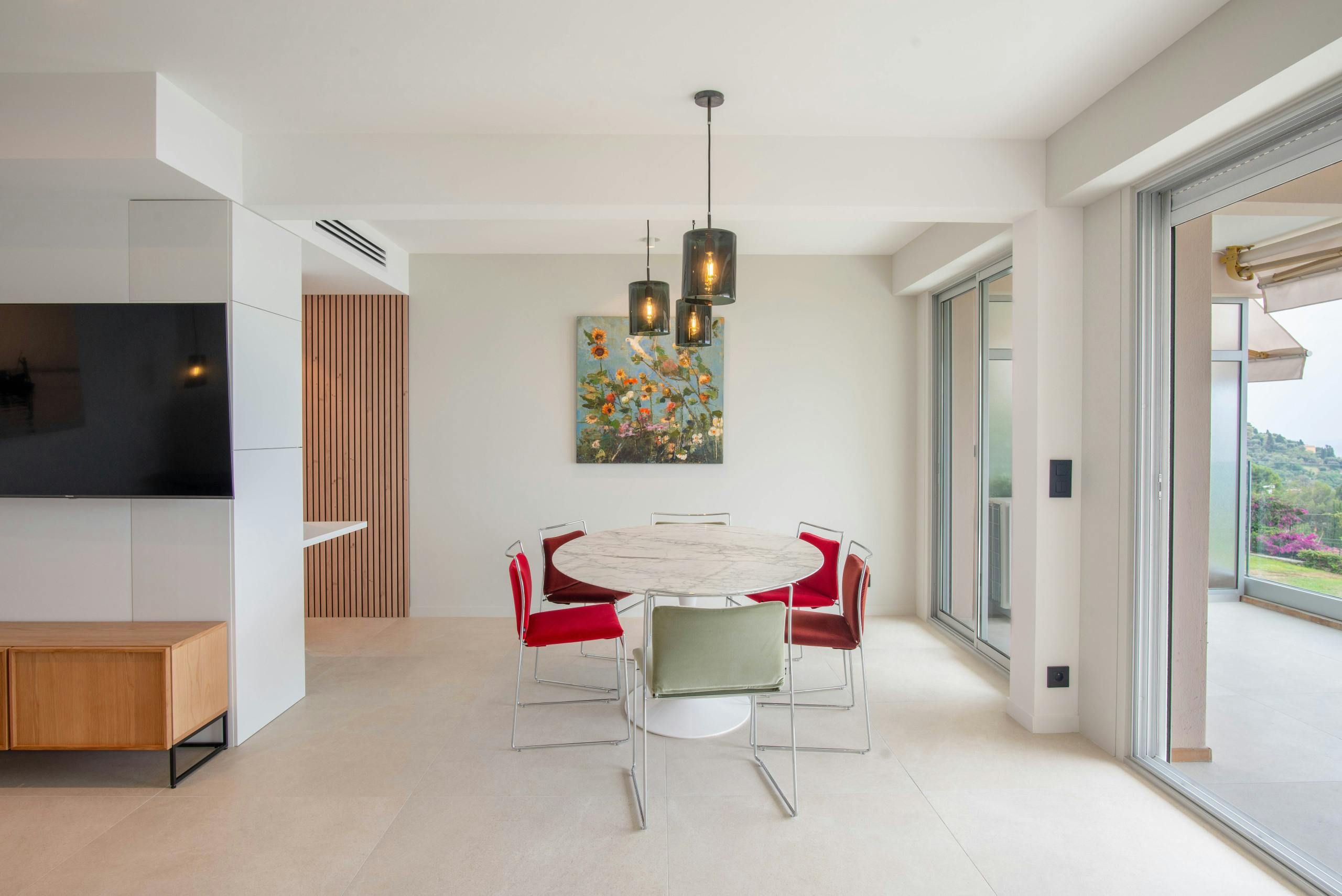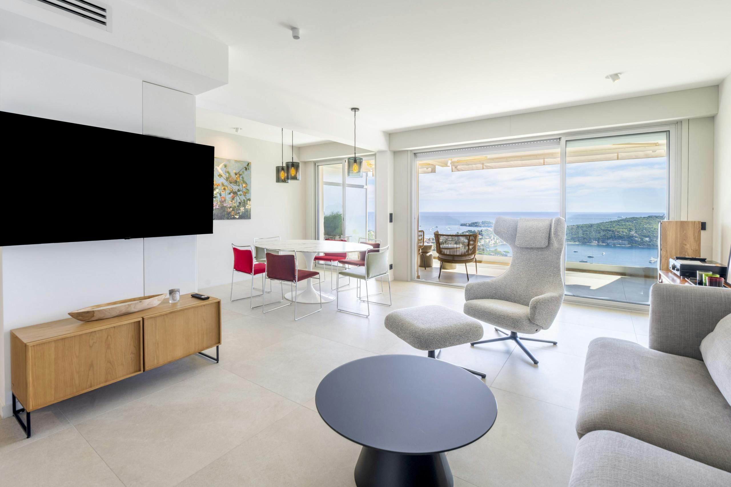 Combining the winning qualities of modern, comfortable interiors with panoramic views that will have your jaw on the floor as soon as you cross the threshold, this two-bedroom apartment offers an unforgettable stay in the hills of Villefranche-sur-Mer. A true Mediterranean gem, it’s filled with natural light and features a private terrace that frames the spectacular vista, inviting lazy mornings and sun-drenched afternoons. When you’re ready to venture out, there’s plenty to see and do – explore the nearby coastal towns and beachfronts, or unwind at the cafes and restaurants throughout Villefranche-sur-Mer.