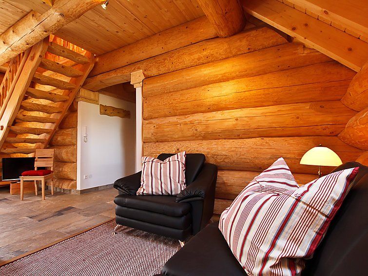 "Fichte", 3-room apartment 60 m2 on 2 levels on 2nd floor. Stylish and wooden furniture furnishings: living/dining room with Scandinavian wood stove and satellite TV (flat screen). Exit to the balcony. 1 room with 1 bed (90 cm, length 200 cm). Open kitchen (oven, dishwasher, 4 ceramic glass hob hotplates, electric coffee machine).