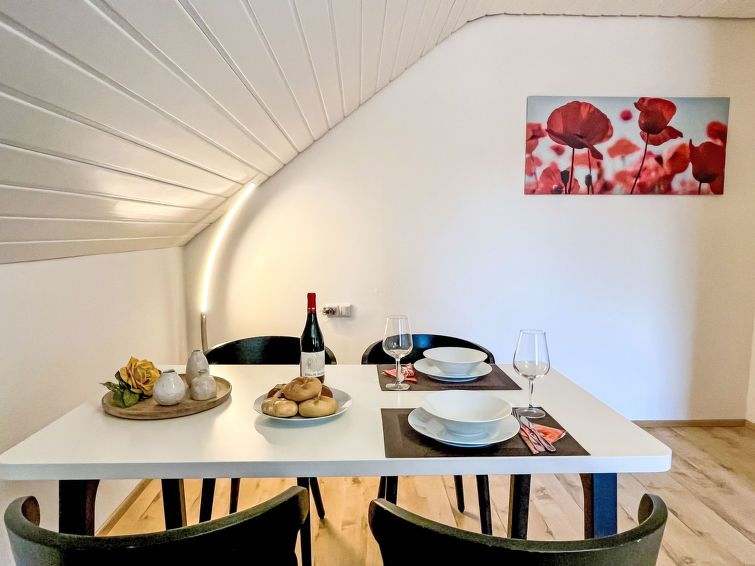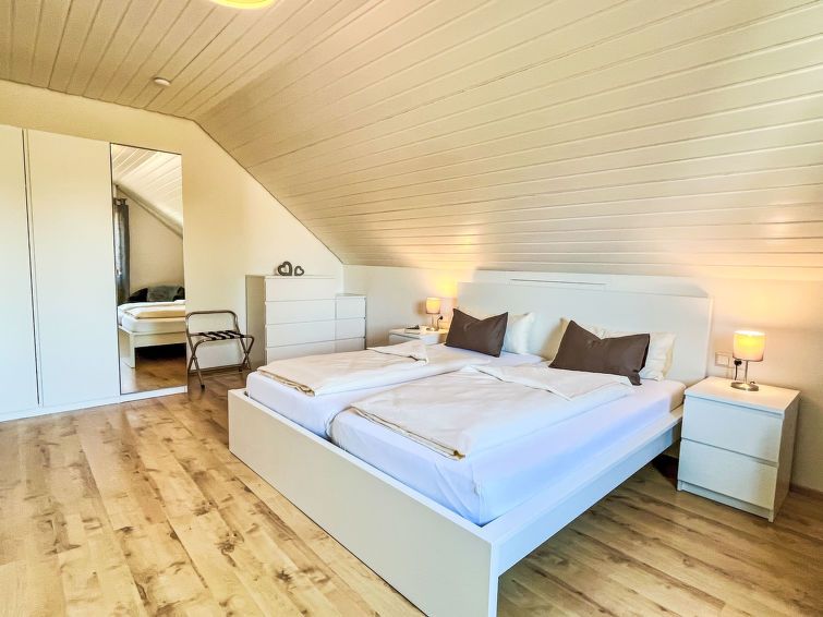 "Land in Sicht", 2-room apartment 60 m2, on the top floor. Bright, partly with sloping ceilings, beautiful and tasteful furnishings: living/sleeping room with 1 double sofabed (160 cm), dining table and satellite TV (flat screen). 1 room with 1 double bed and satellite TV (flat screen).