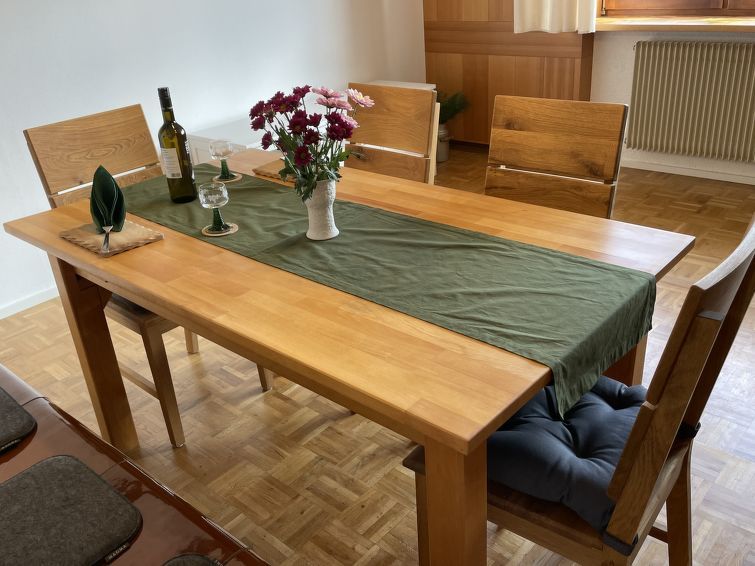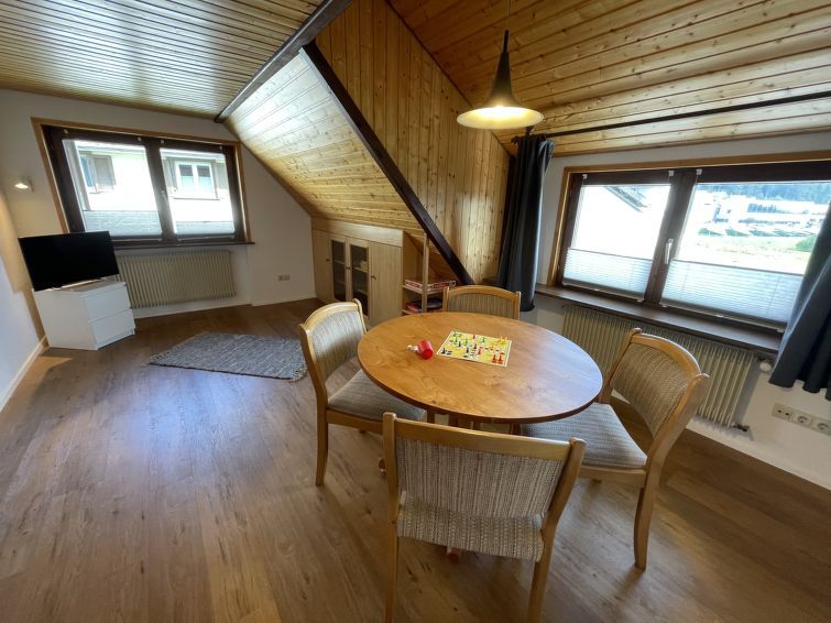 5-room house 120 m2. Spacious, tasteful furnishings: living/dining room with panoramic window. Large kitchen (oven, dishwasher, 4 ceramic glass hob hotplates, microwave, freezer, electric coffee machine) with dining nook. Sep. WC. Upper floor: large living room with sloping ceilings with satellite TV (flat screen).