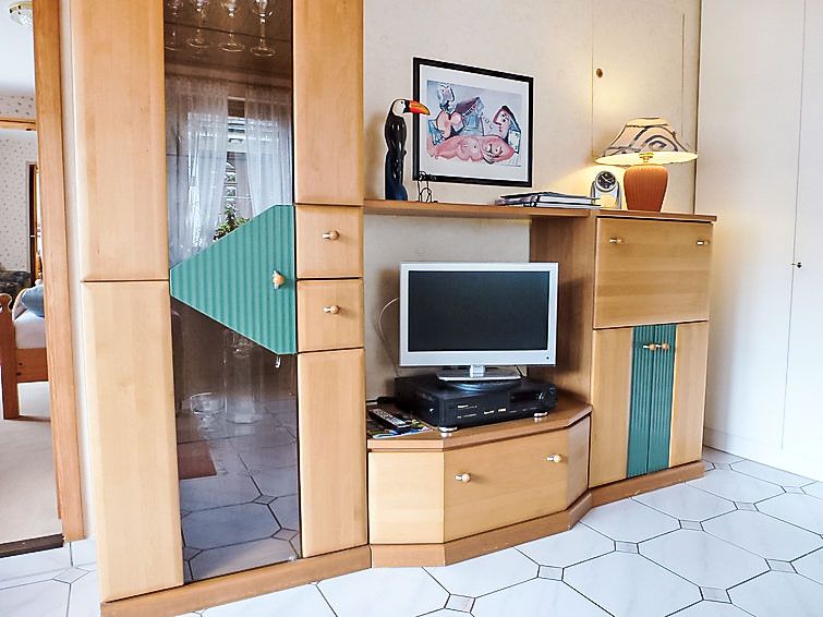 2-room apartment 50 m2, on the ground floor. Bright, cosy furnishings: living/dining room with 1 sofabed, cable TV and hi-fi system. 1 double bedroom. Small kitchen (oven, 4 ceramic glass hob hotplates, microwave, electric coffee machine). Bath/WC. Small patio. Barbecue (portable).
