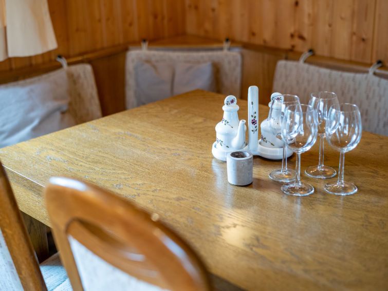 Beautiful, spacious house with a bit of a view over the valley and forest. Plenty of closet space. Old-fashioned, but well-made. Except for the sofa beds. The oven and washing machine are a plus. Quiet village, except for a big party on the weekend. Swimming pools are nice and close, but unfortunately, they're only open for a short time. The indoor pool is open until 11 pm during the week and 12 pm on weekends (children are not allowed to jump, and you have to be as quiet as possible here...). The outdoor pool doesn't open until 12 pm, and the weather has to be good. Beautiful surroundings!