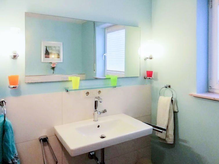 Spacious accommodation with 3 bedrooms, enough closets and comfortable beds. Parents' room with large double bed, children's room with one bed each. Large living/dining room, enough dishes, large TV, perfect WiFi. Great terrace and all windows with external blinds. Bathroom with barrier-free shower and a separate toilet. We had a great time, were able to sleep well, cook in the evening or sit on the terrace, there was enough space for everyone, highly recommended.